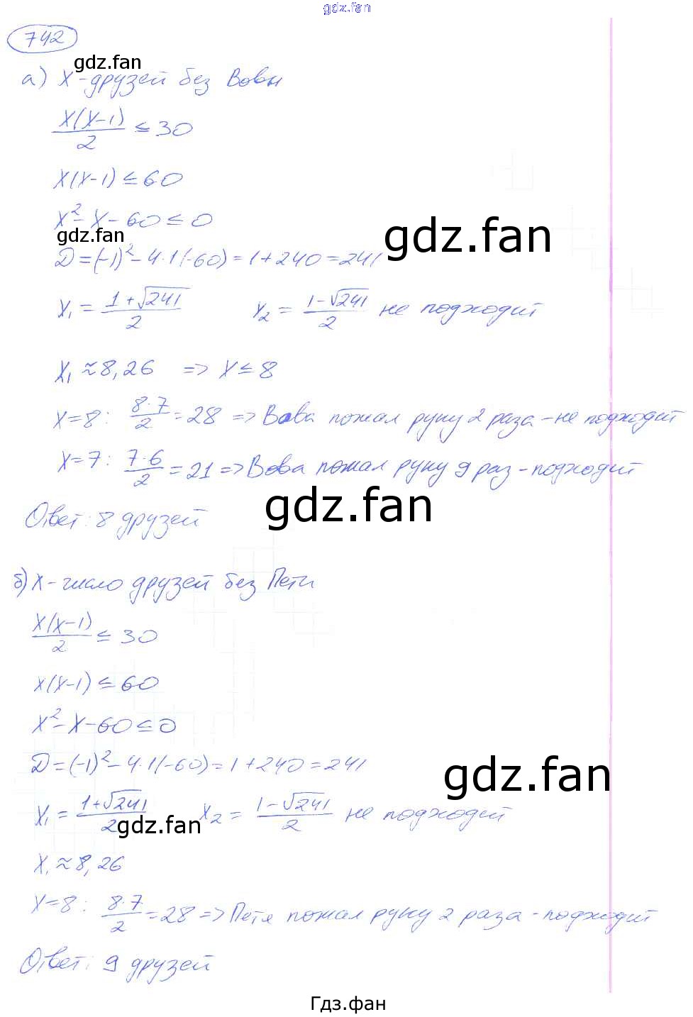 Проверка домашнего задания всегда занимает большое количество времени. На помощь приходит ГДЗ фан по Алгебре девятого класса. Здесь собраны популярные ответы на 742 (стр. 224) Алгебра 9 класс Никольский С.М.