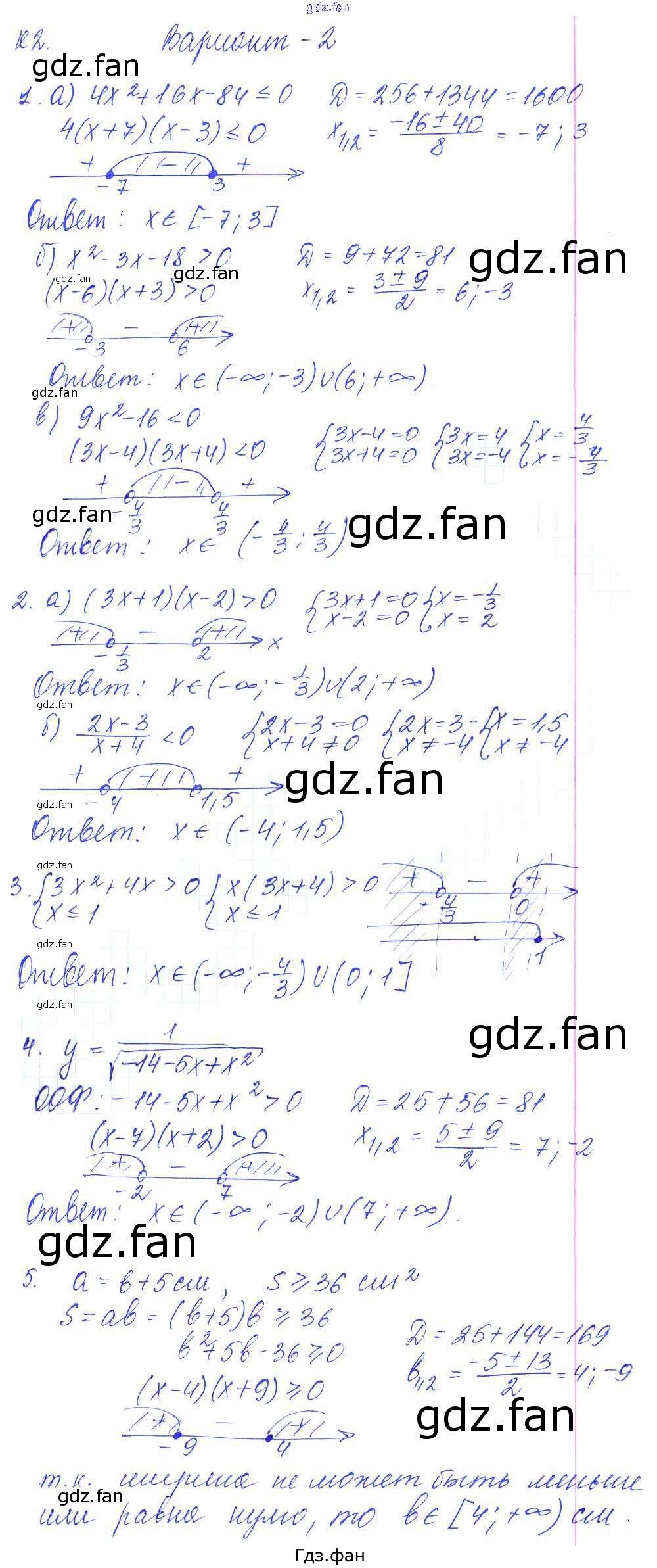 Проверка домашнего задания всегда занимает большое количество времени. На помощь приходит ГДЗ фан по Алгебре девятого класса. Здесь собраны популярные ответы на Вариант №2 (стр. 84) Алгебра 9 класс Контрольные и самостоятельные работы Журавлев С.Г.