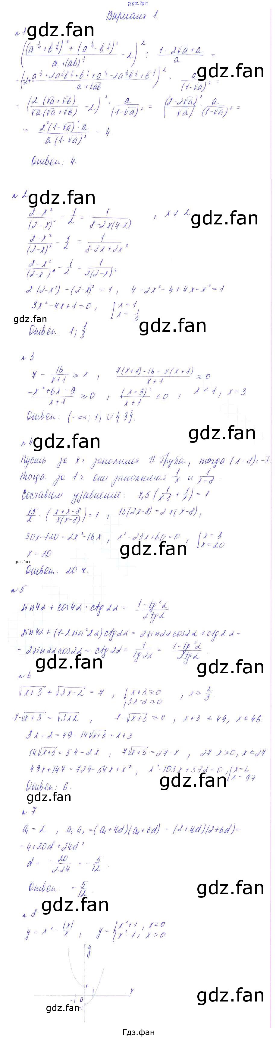 Проверка домашнего задания всегда занимает большое количество времени. На помощь приходит ГДЗ фан по Алгебре девятого класса. Здесь собраны популярные ответы на вариант 1 (стр. 96-97) Алгебра 9 класс Дидактические материалы Зив Б.Г.
