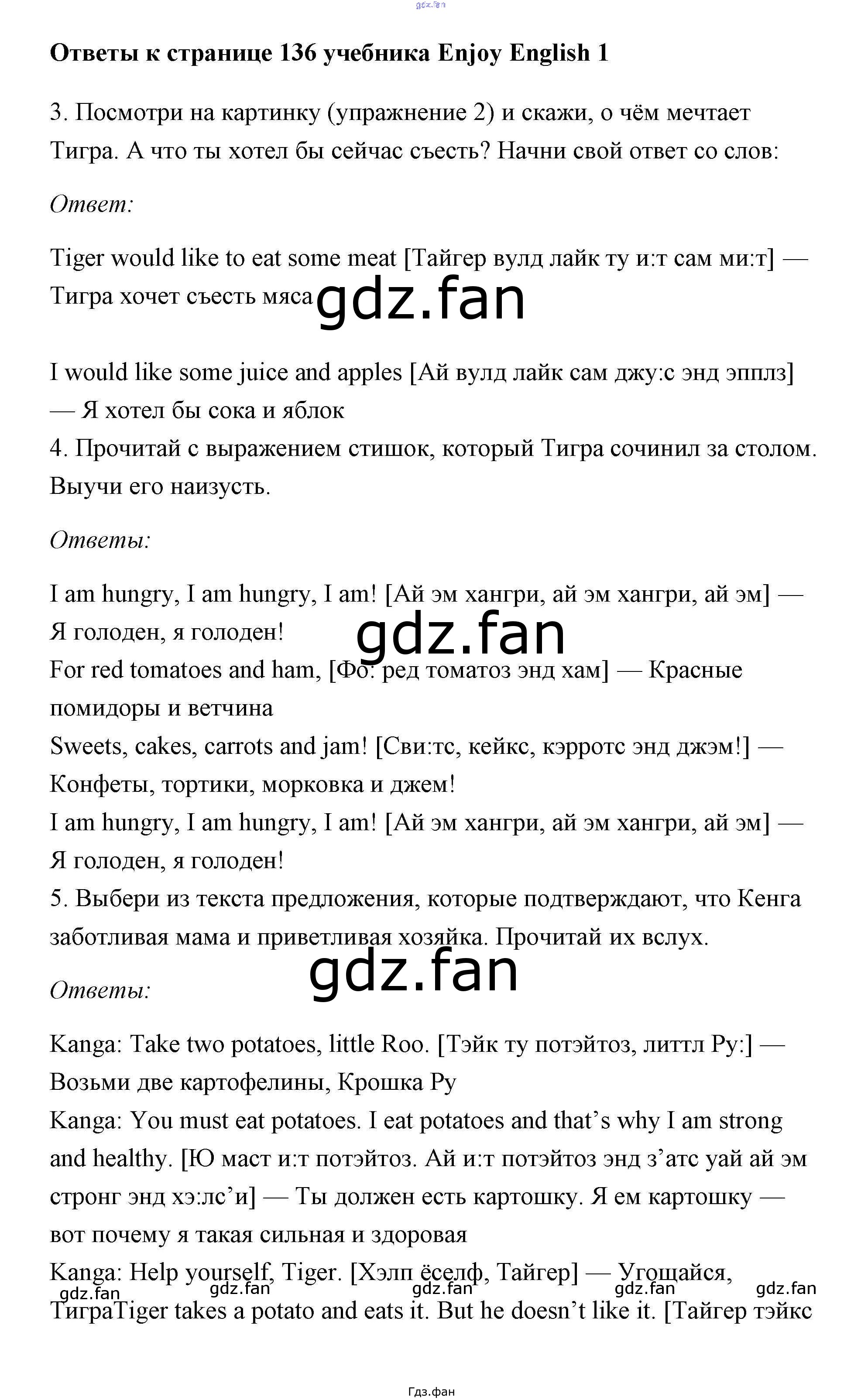 Проверка домашнего задания всегда занимает большое количество времени. На помощь приходит ГДЗ фан по Английскому языку первого класса. Здесь собраны популярные ответы на 136 (задание 3, 4, 5) Английский язык 1 класс Биболетова М.З.