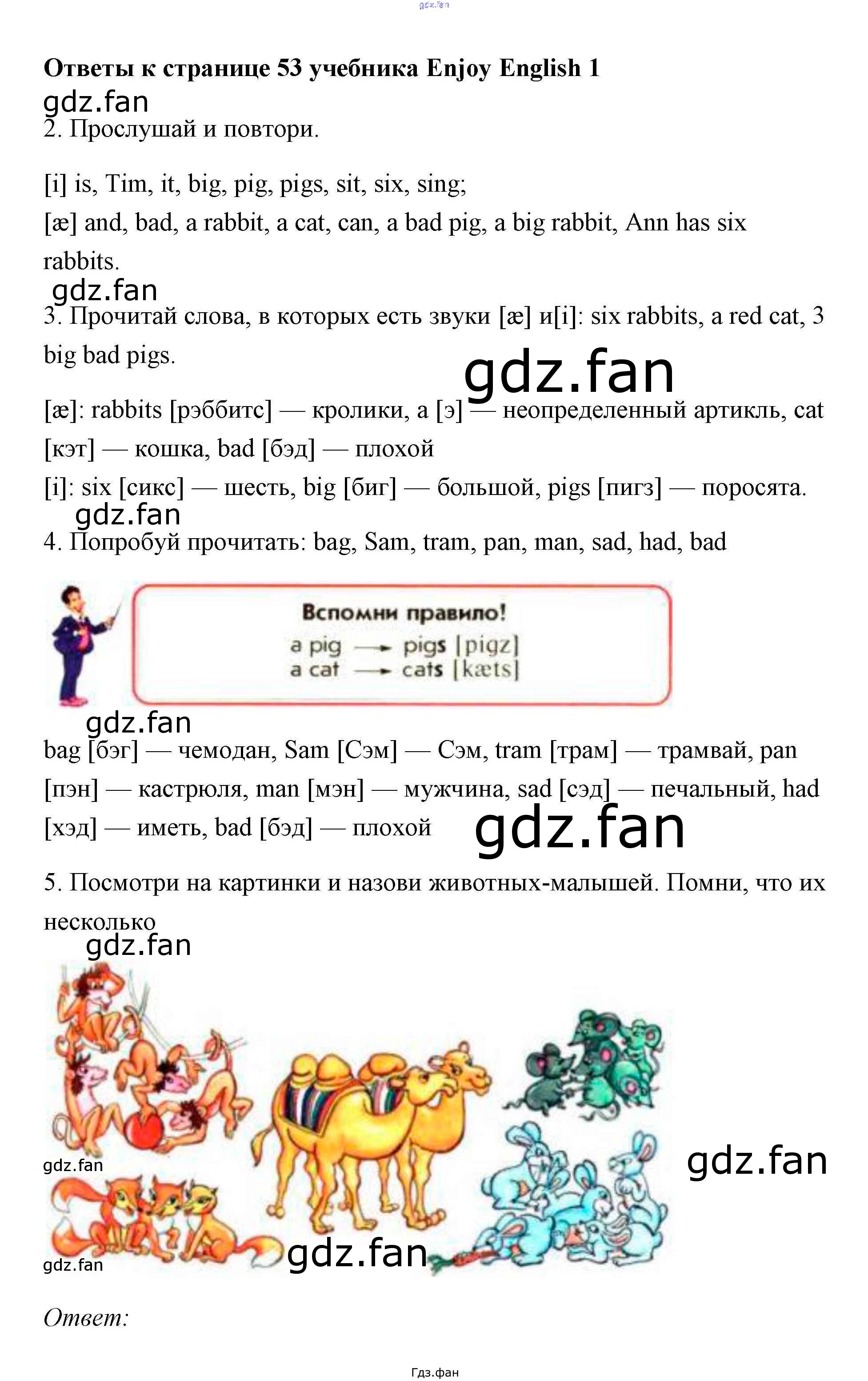 Проверка домашнего задания всегда занимает большое количество времени. На помощь приходит ГДЗ фан по Английскому языку первого класса. Здесь собраны популярные ответы на 53 (задание 2, 3, 4, 5) Английский язык 1 класс Биболетова М.З.