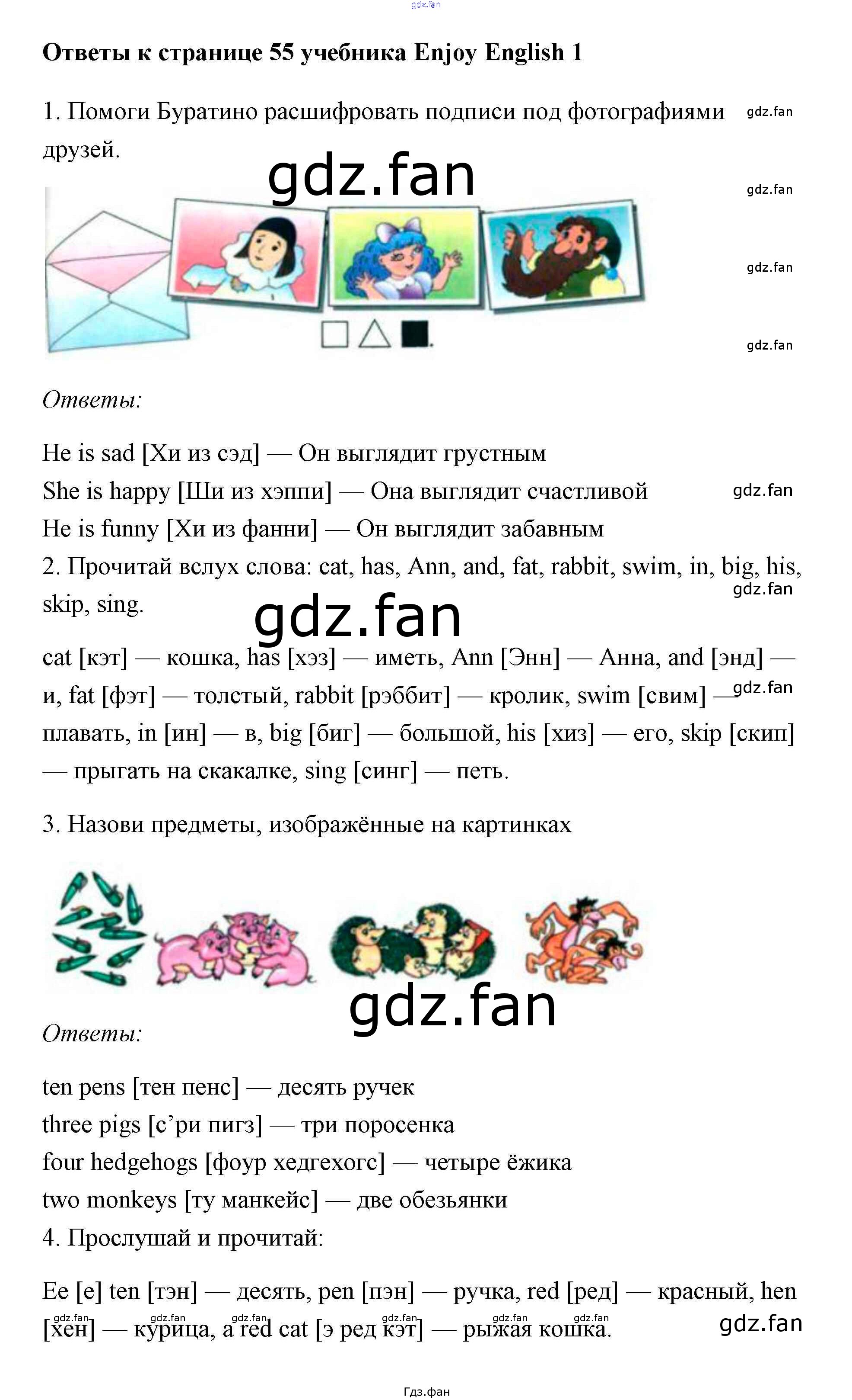 Проверка домашнего задания всегда занимает большое количество времени. На помощь приходит ГДЗ фан по Английскому языку первого класса. Здесь собраны популярные ответы на 55 (задание 1, 2, 3, 4, 5, 6) Английский язык 1 класс Биболетова М.З.