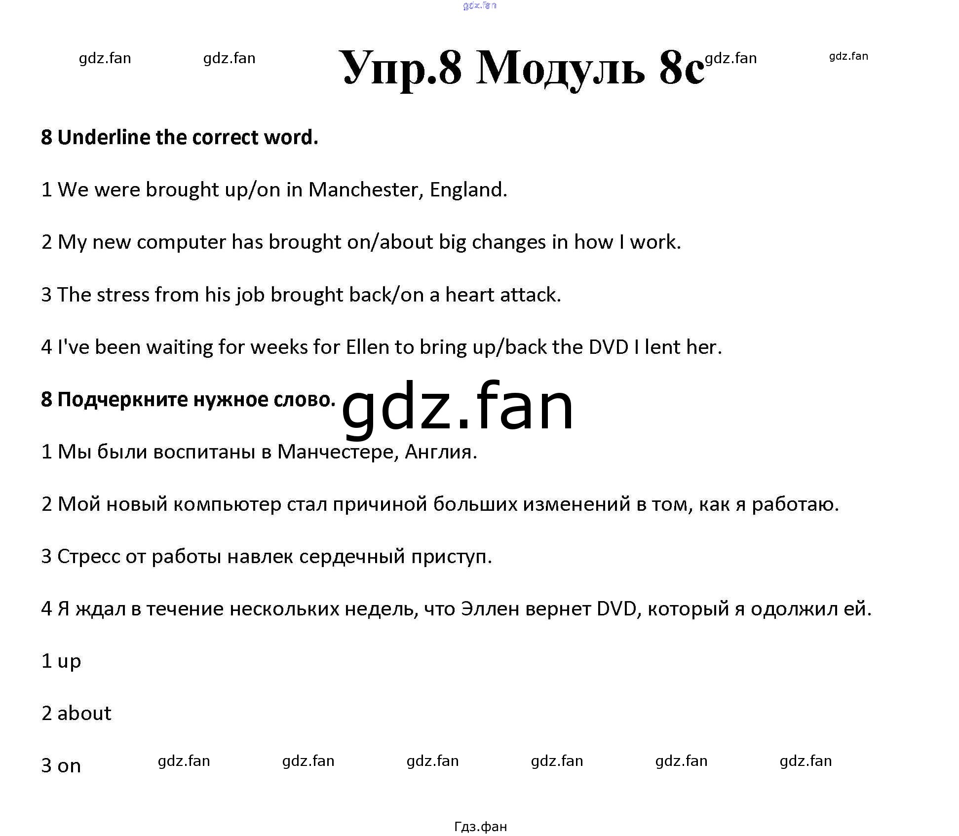 Проверка домашнего задания всегда занимает большое количество времени. На помощь приходит ГДЗ фан по Английскому языку десятого класса. Здесь собраны популярные ответы на 8 (стр. 63) Английский язык 10 класс рабочая тетрадь Spotlight Афанасьева О.В.