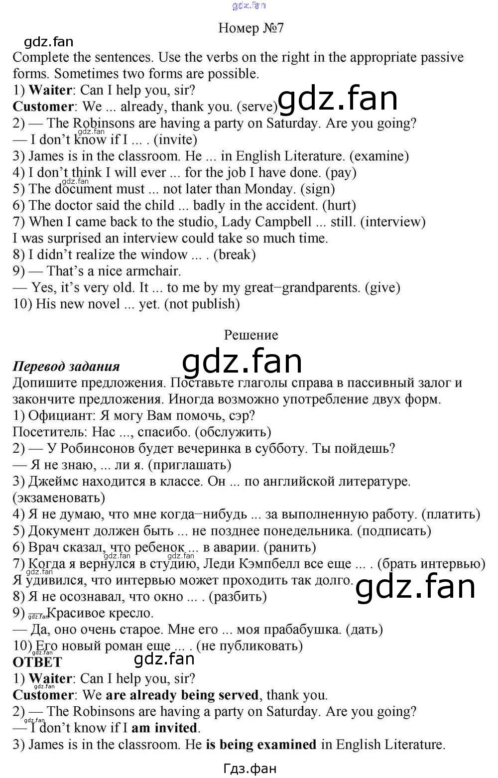 Проверка домашнего задания всегда занимает большое количество времени. На помощь приходит ГДЗ фан по Английскому языку десятого класса. Здесь собраны популярные ответы на 7 (стр. 103) Английский язык 10 класс Rainbow Афанасьева О.В.
