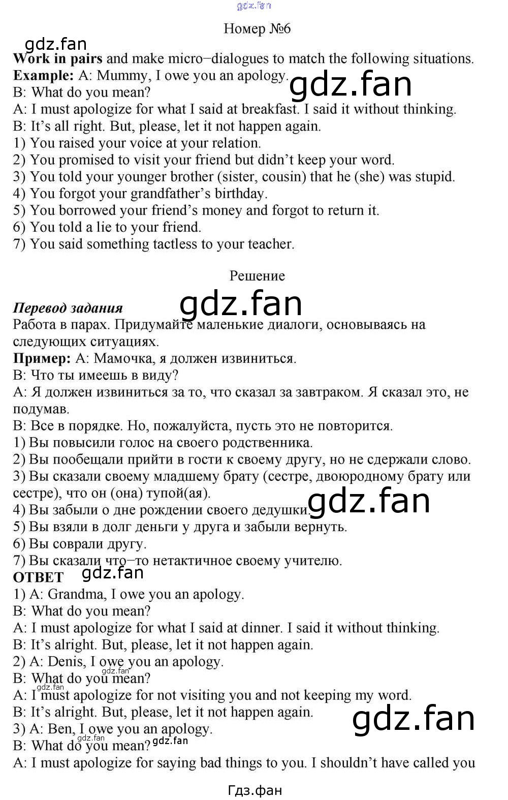 Проверка домашнего задания всегда занимает большое количество времени. На помощь приходит ГДЗ фан по Английскому языку десятого класса. Здесь собраны популярные ответы на 6 (стр. 85) Английский язык 10 класс Rainbow Афанасьева О.В.