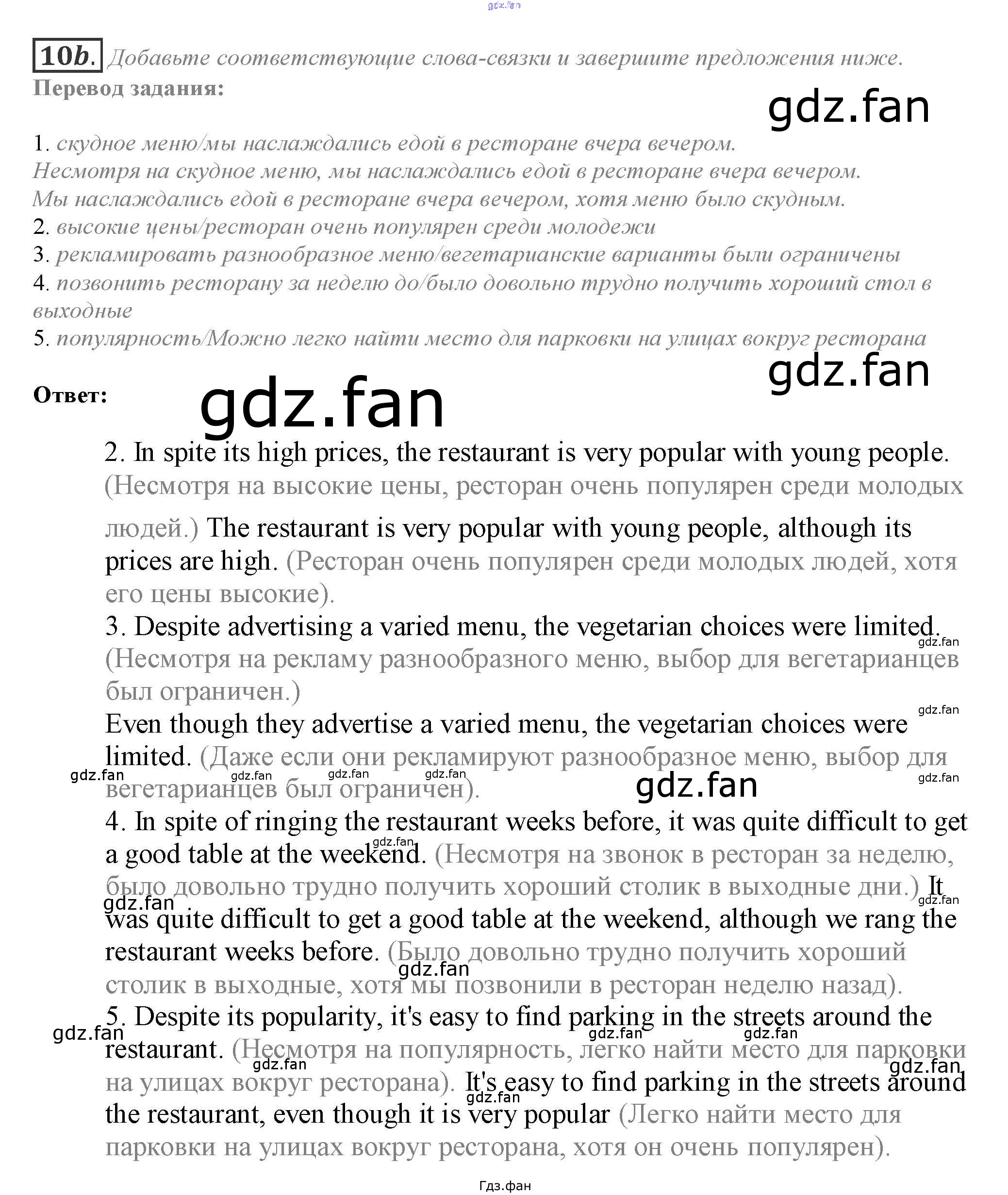 Проверка домашнего задания всегда занимает большое количество времени. На помощь приходит ГДЗ фан по Английскому языку десятого класса. Здесь собраны популярные ответы на 10b (стр. 114) Английский язык 10 класс Spotlight Афанасьева О.В.