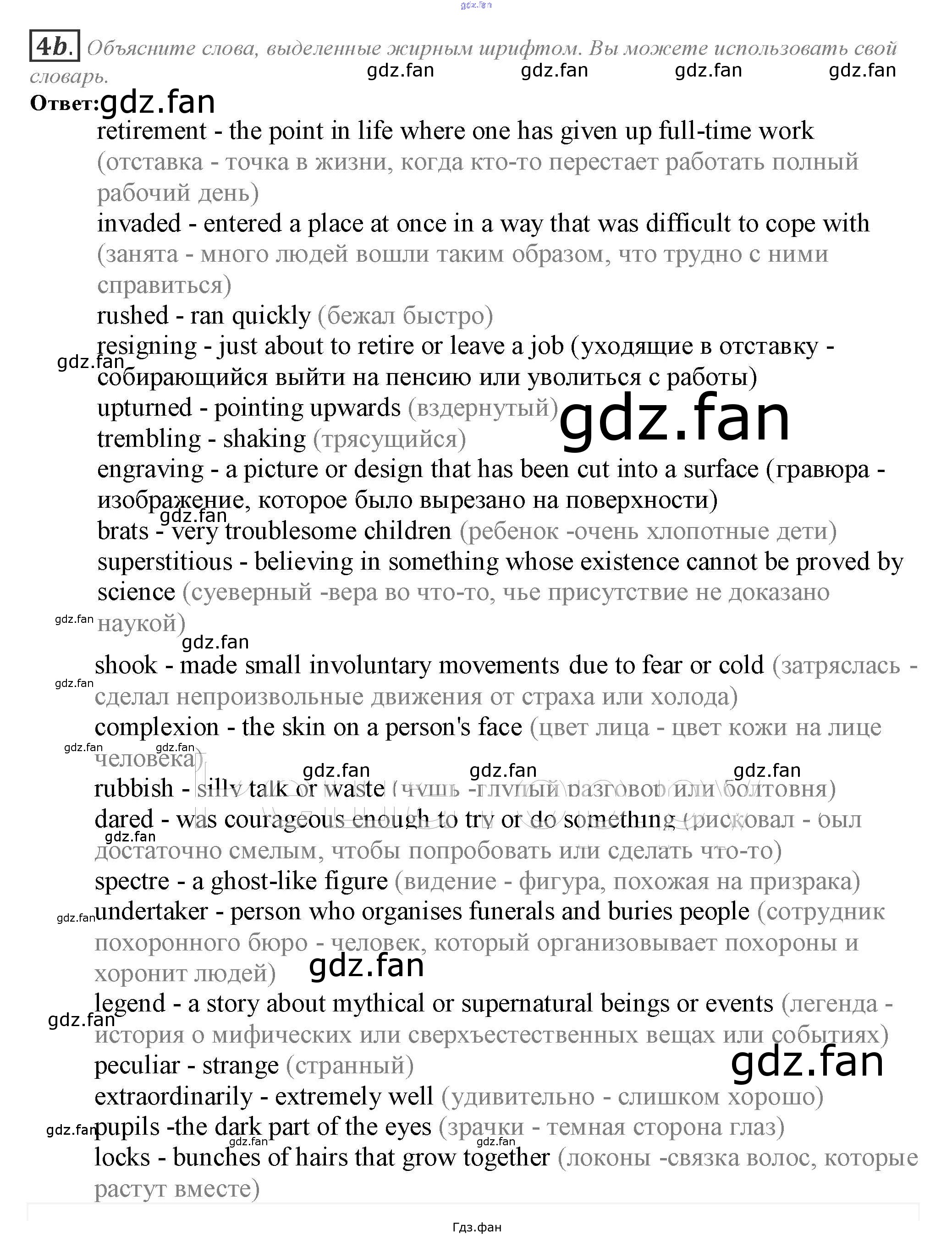 Проверка домашнего задания всегда занимает большое количество времени. На помощь приходит ГДЗ фан по Английскому языку десятого класса. Здесь собраны популярные ответы на 4b (стр. 129) Английский язык 10 класс Spotlight Афанасьева О.В.