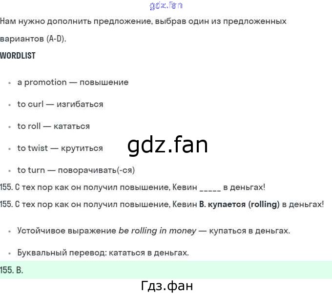 Проверка домашнего задания всегда занимает большое количество времени. На помощь приходит ГДЗ фан по Английскому языку десятого класса. Здесь собраны популярные ответы на 155 (стр. 88) Английский язык 10 класс рабочая тетрадь Starlight Баранова К.М.