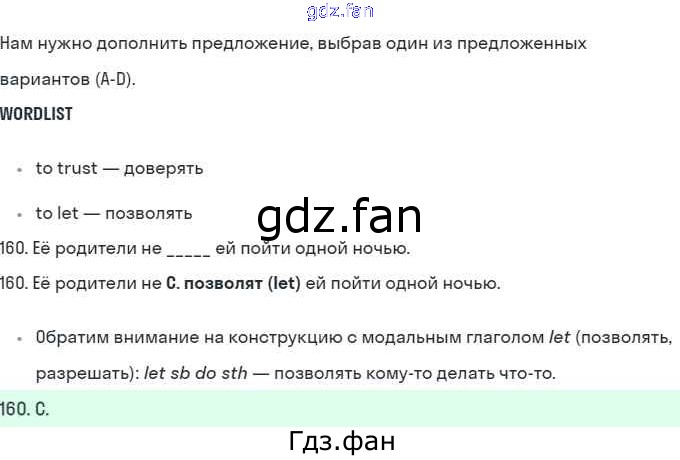 Проверка домашнего задания всегда занимает большое количество времени. На помощь приходит ГДЗ фан по Английскому языку десятого класса. Здесь собраны популярные ответы на 160 (стр. 88) Английский язык 10 класс рабочая тетрадь Starlight Баранова К.М.