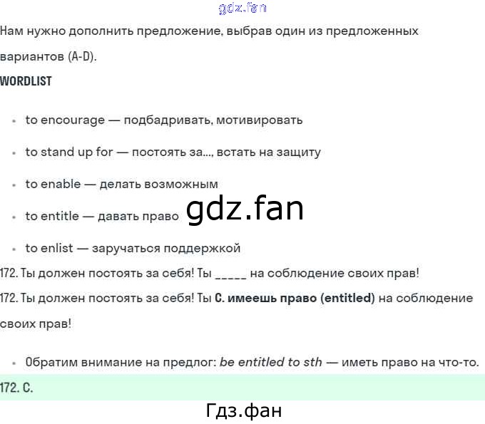 Проверка домашнего задания всегда занимает большое количество времени. На помощь приходит ГДЗ фан по Английскому языку десятого класса. Здесь собраны популярные ответы на 172 (стр. 89) Английский язык 10 класс рабочая тетрадь Starlight Баранова К.М.