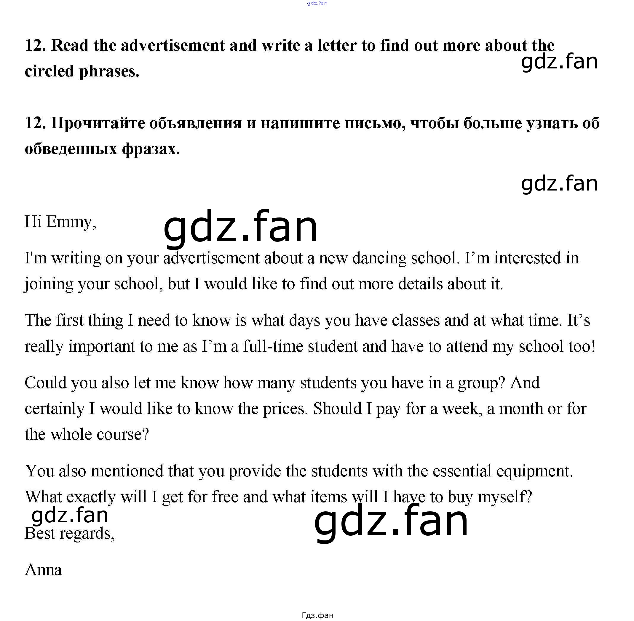 Проверка домашнего задания всегда занимает большое количество времени. На помощь приходит ГДЗ фан по Английскому языку одиннадцатого класса. Здесь собраны популярные ответы на 12 (стр. 72) Английский язык 11 класс рабочая тетрадь №1 Биболетова