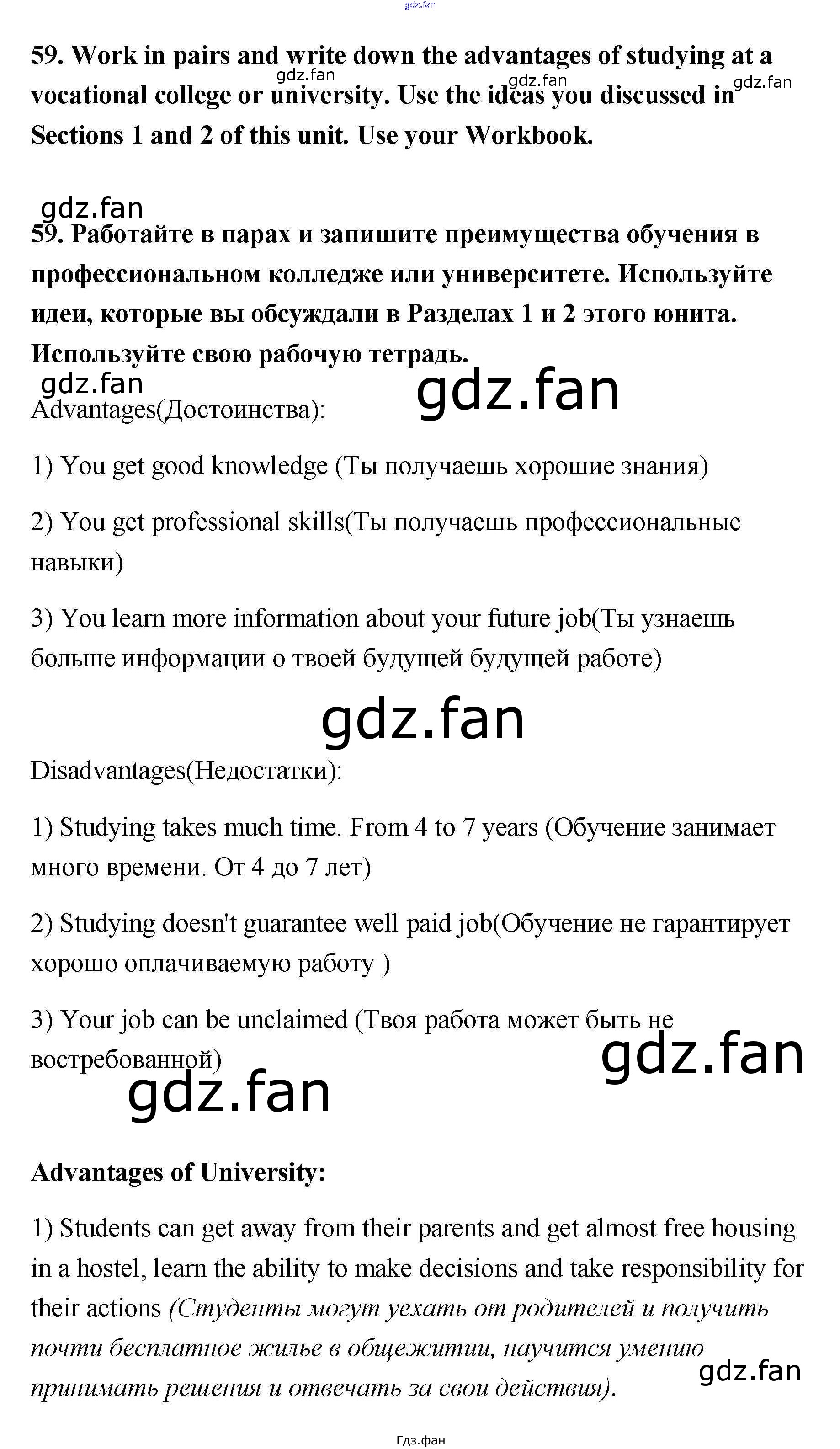 Проверка домашнего задания всегда занимает большое количество времени. На помощь приходит ГДЗ фан по Английскому языку одиннадцатого класса. Здесь собраны популярные ответы на 59 (стр. 61) Английский язык 11 класс Биболетова М.З.