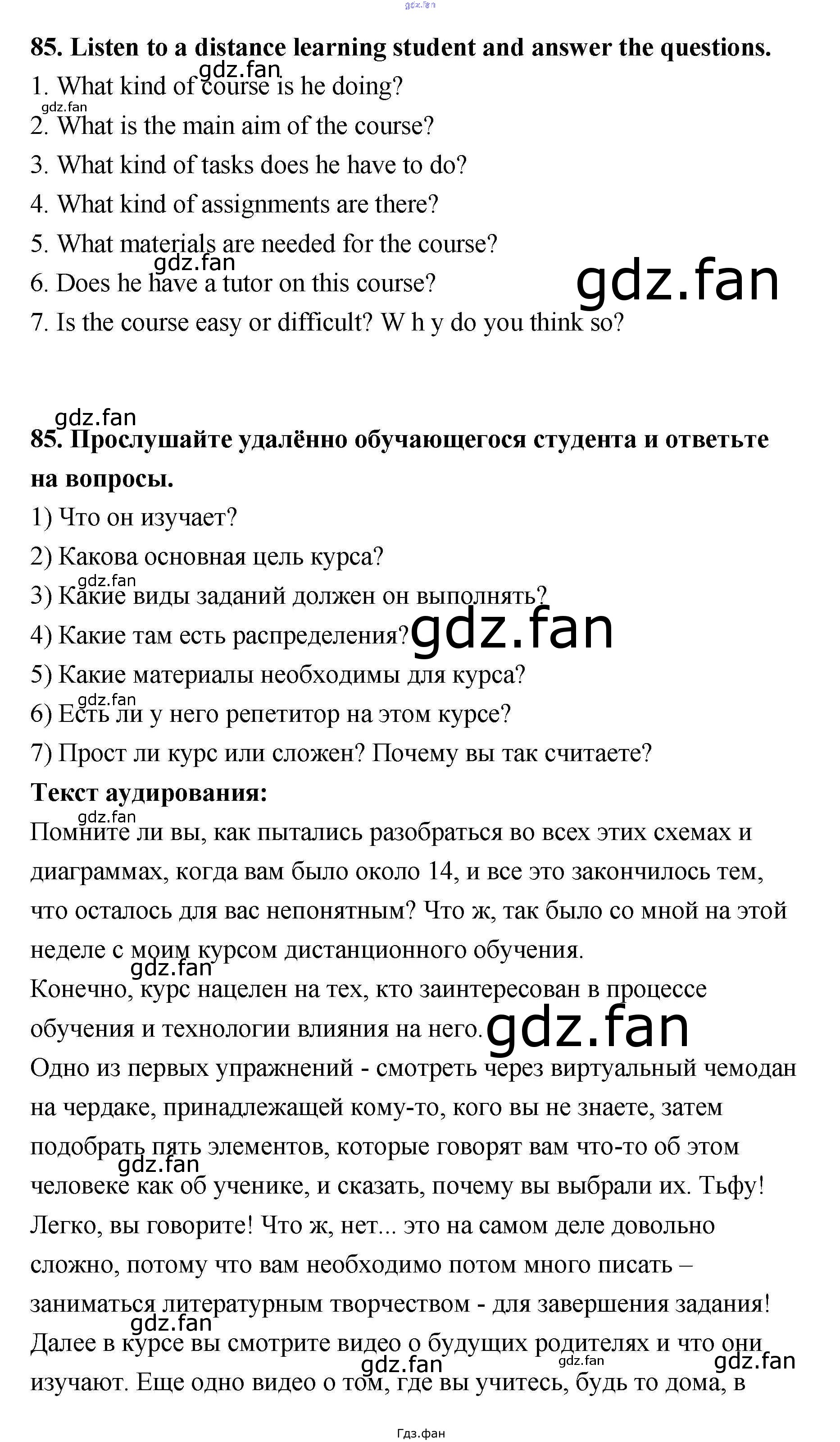 Проверка домашнего задания всегда занимает большое количество времени. На помощь приходит ГДЗ фан по Английскому языку одиннадцатого класса. Здесь собраны популярные ответы на 85 (стр. 70) Английский язык 11 класс Биболетова М.З.