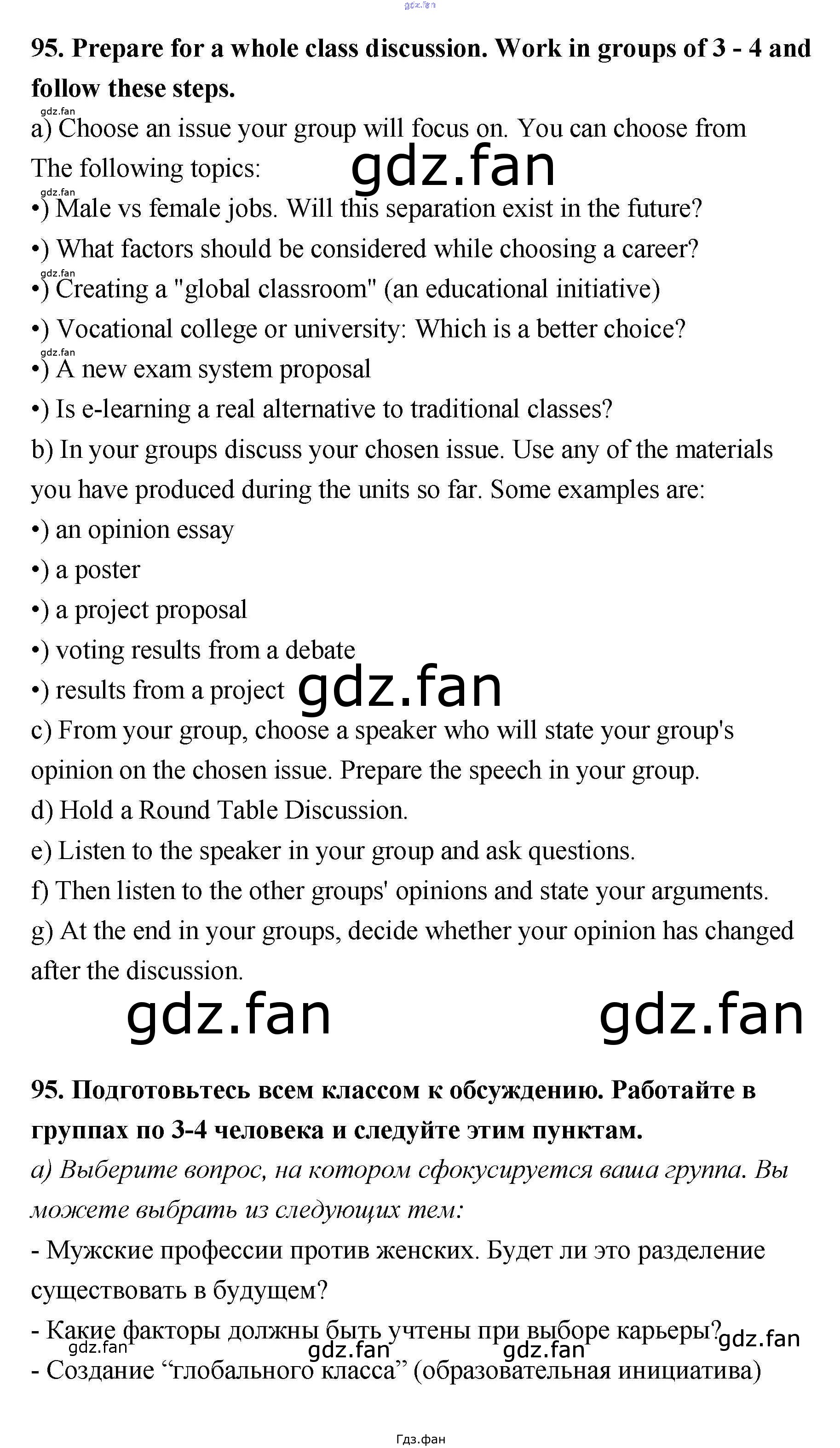 Проверка домашнего задания всегда занимает большое количество времени. На помощь приходит ГДЗ фан по Английскому языку одиннадцатого класса. Здесь собраны популярные ответы на 95 (стр. 73) Английский язык 11 класс Биболетова М.З.