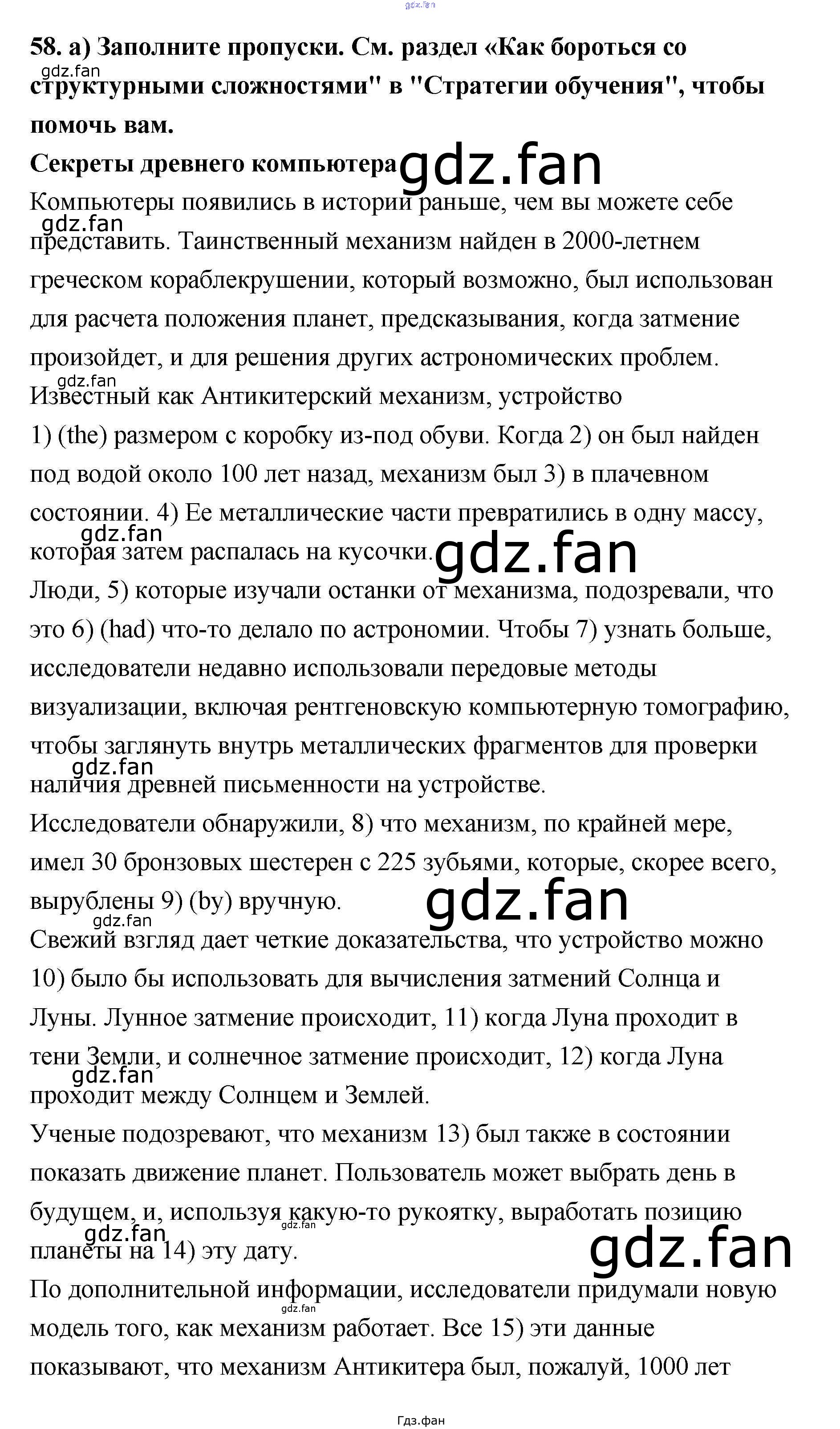 Проверка домашнего задания всегда занимает большое количество времени. На помощь приходит ГДЗ фан по Английскому языку одиннадцатого класса. Здесь собраны популярные ответы на 58 (стр. 96) Английский язык 11 класс Биболетова М.З.