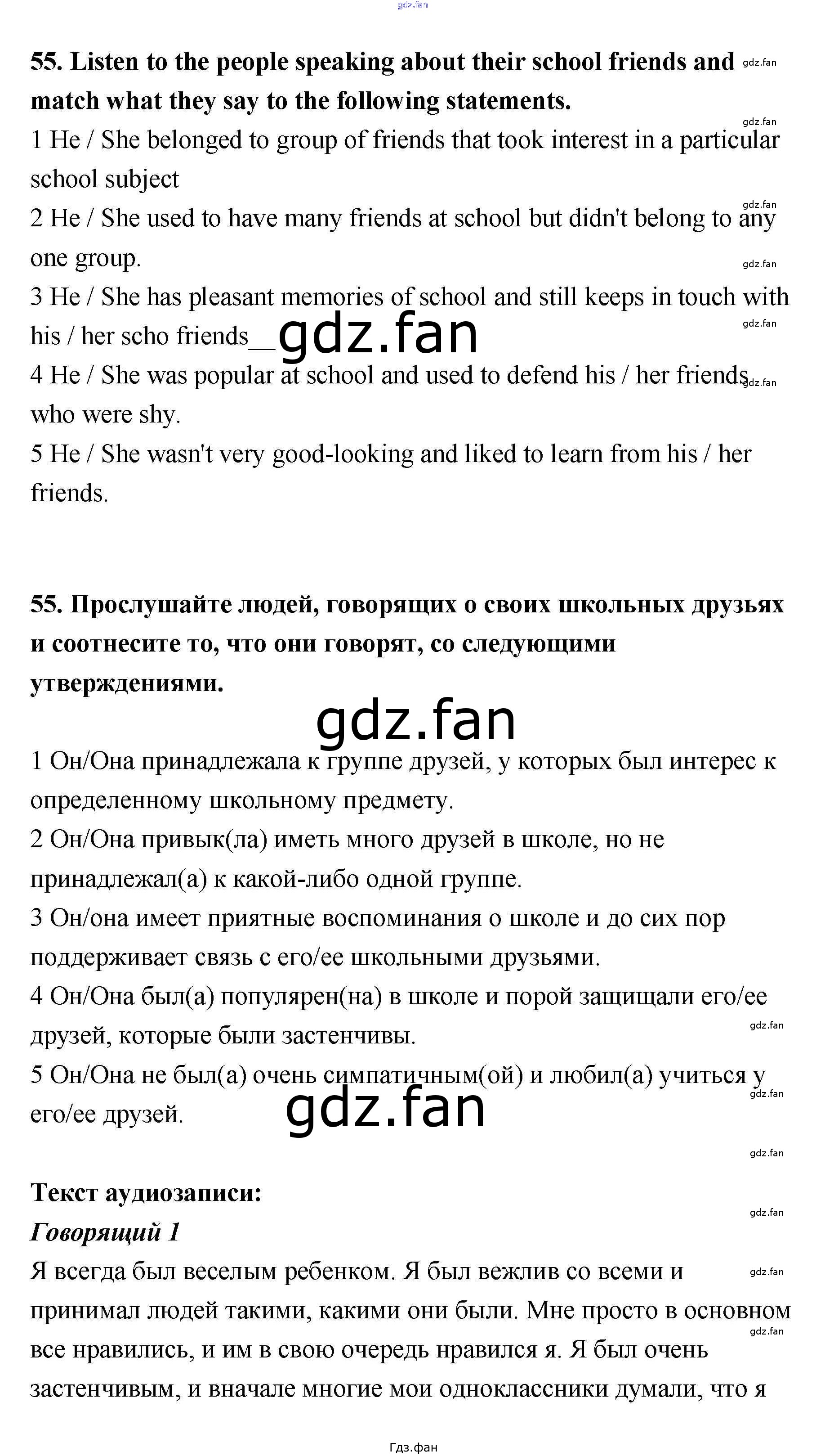 Проверка домашнего задания всегда занимает большое количество времени. На помощь приходит ГДЗ фан по Английскому языку одиннадцатого класса. Здесь собраны популярные ответы на 55 (стр. 138) Английский язык 11 класс Биболетова М.З.