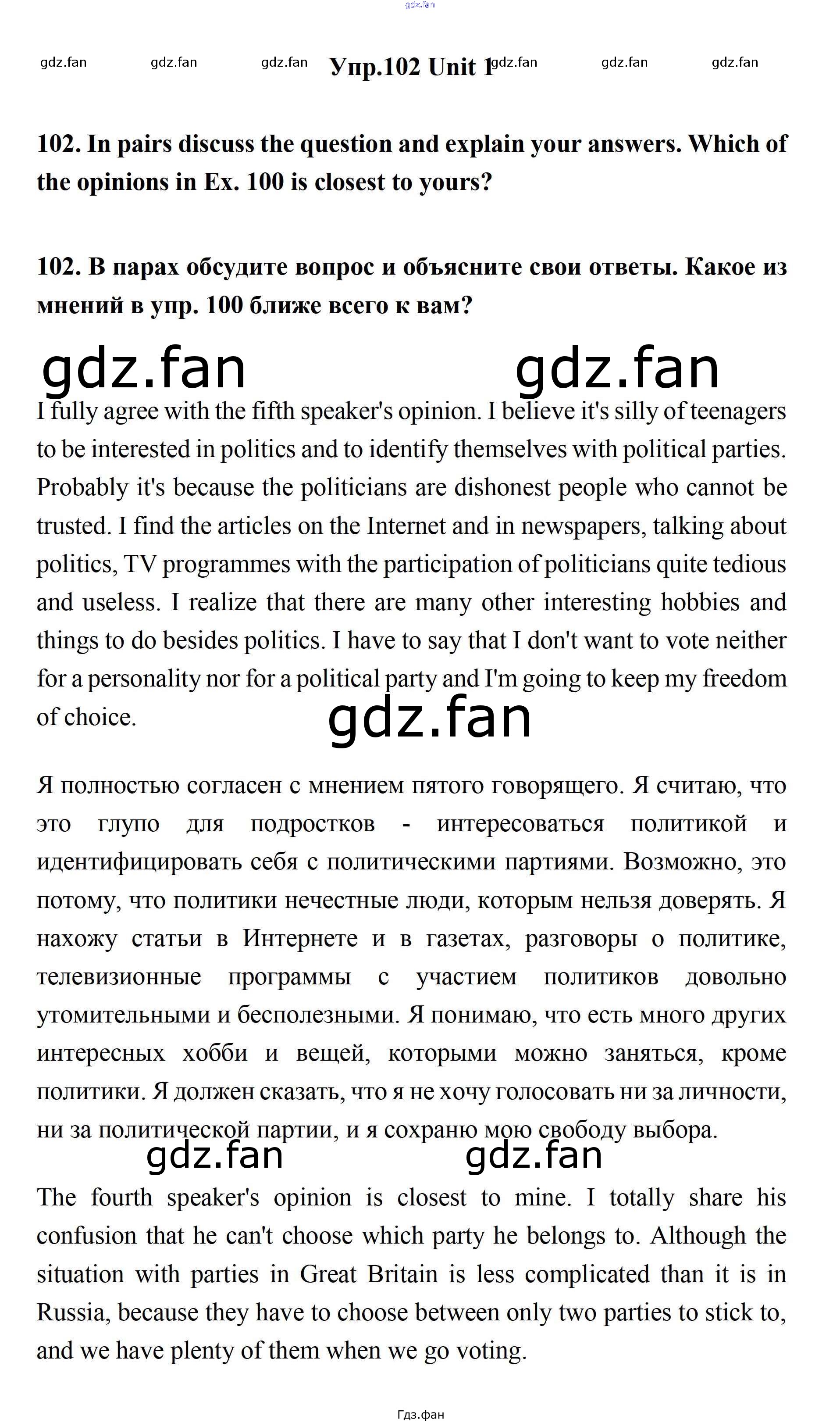 Проверка домашнего задания всегда занимает большое количество времени. На помощь приходит ГДЗ фан по Английскому языку одиннадцатого класса. Здесь собраны популярные ответы на 102 (стр. 35) Английский язык 11 класс Биболетова