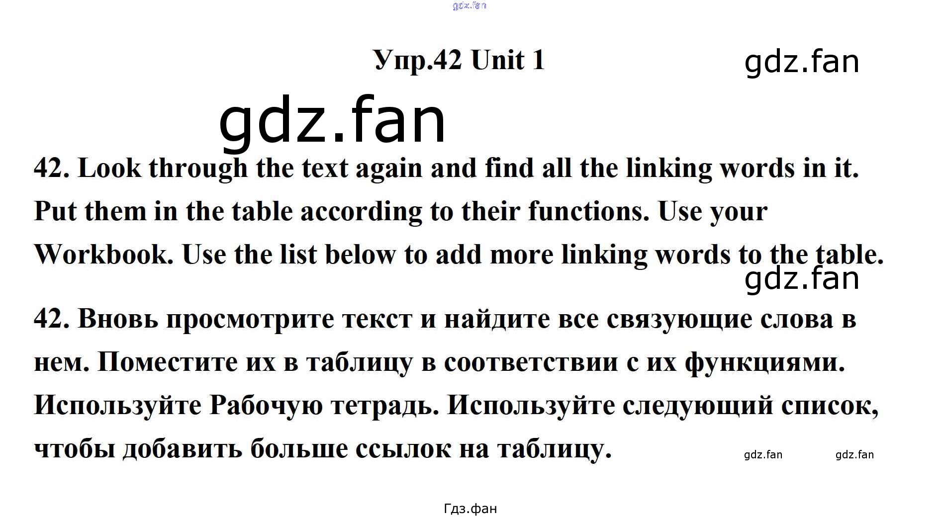 Проверка домашнего задания всегда занимает большое количество времени. На помощь приходит ГДЗ фан по Английскому языку одиннадцатого класса. Здесь собраны популярные ответы на 42 (стр. 19) Английский язык 11 класс Биболетова