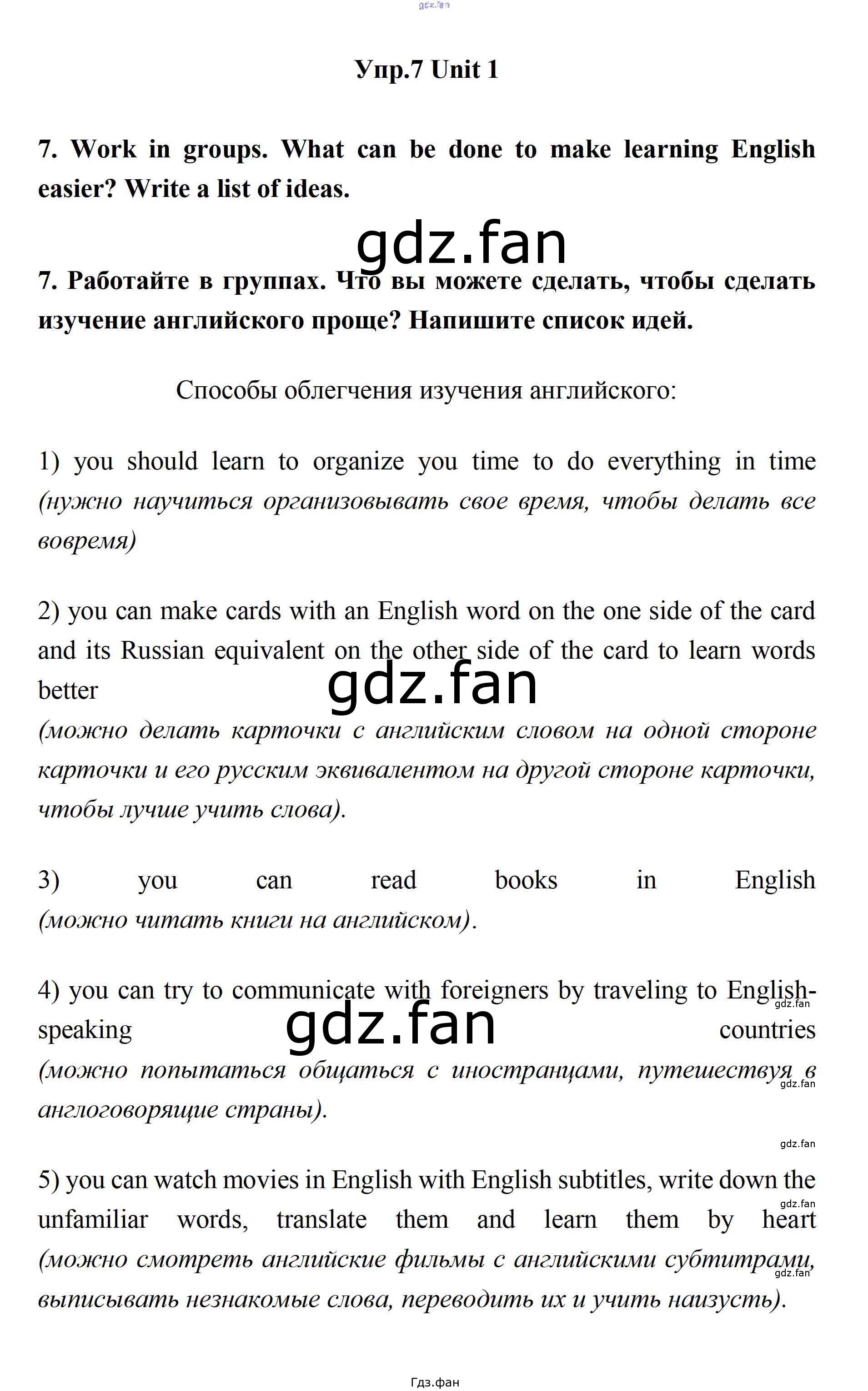 Проверка домашнего задания всегда занимает большое количество времени. На помощь приходит ГДЗ фан по Английскому языку одиннадцатого класса. Здесь собраны популярные ответы на 7 (стр. 10) Английский язык 11 класс Биболетова