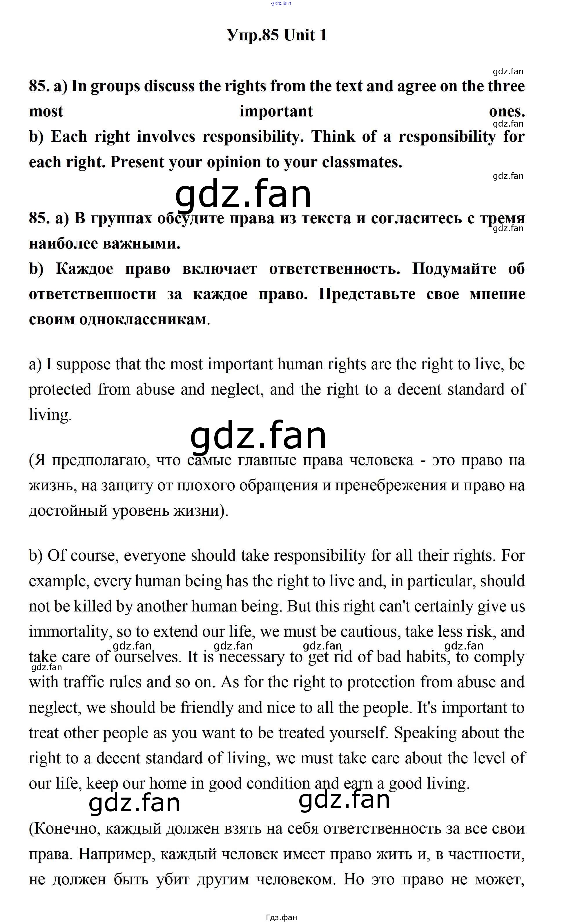 Проверка домашнего задания всегда занимает большое количество времени. На помощь приходит ГДЗ фан по Английскому языку одиннадцатого класса. Здесь собраны популярные ответы на 85 (стр. 30) Английский язык 11 класс Биболетова