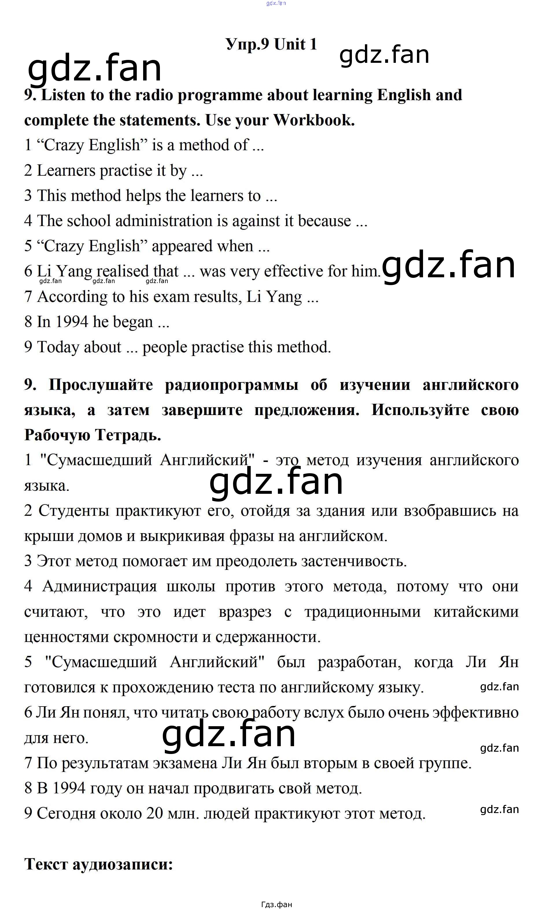 Проверка домашнего задания всегда занимает большое количество времени. На помощь приходит ГДЗ фан по Английскому языку одиннадцатого класса. Здесь собраны популярные ответы на 9 (стр. 10) Английский язык 11 класс Биболетова
