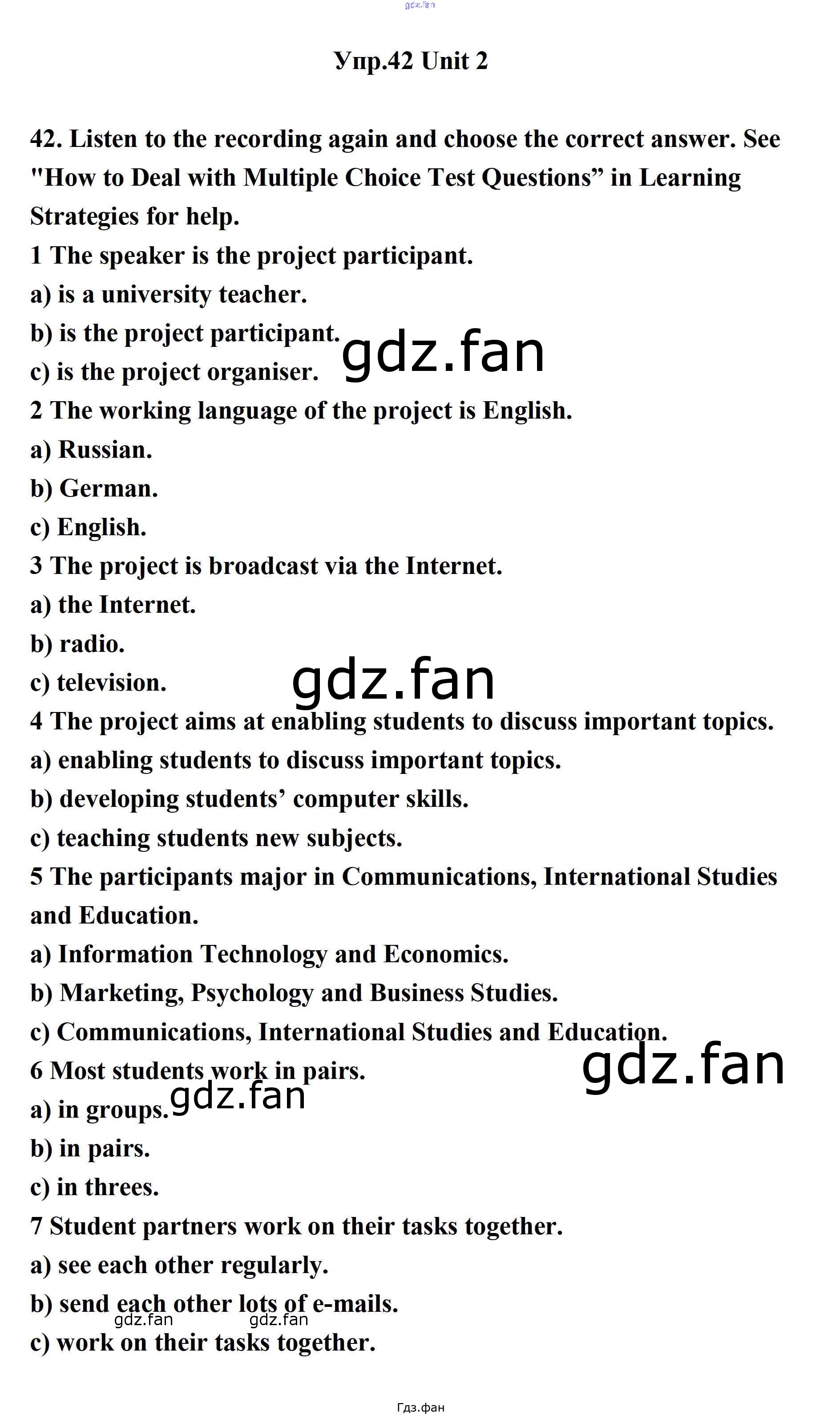 Проверка домашнего задания всегда занимает большое количество времени. На помощь приходит ГДЗ фан по Английскому языку одиннадцатого класса. Здесь собраны популярные ответы на 42 (стр. 61) Английский язык 11 класс Биболетова