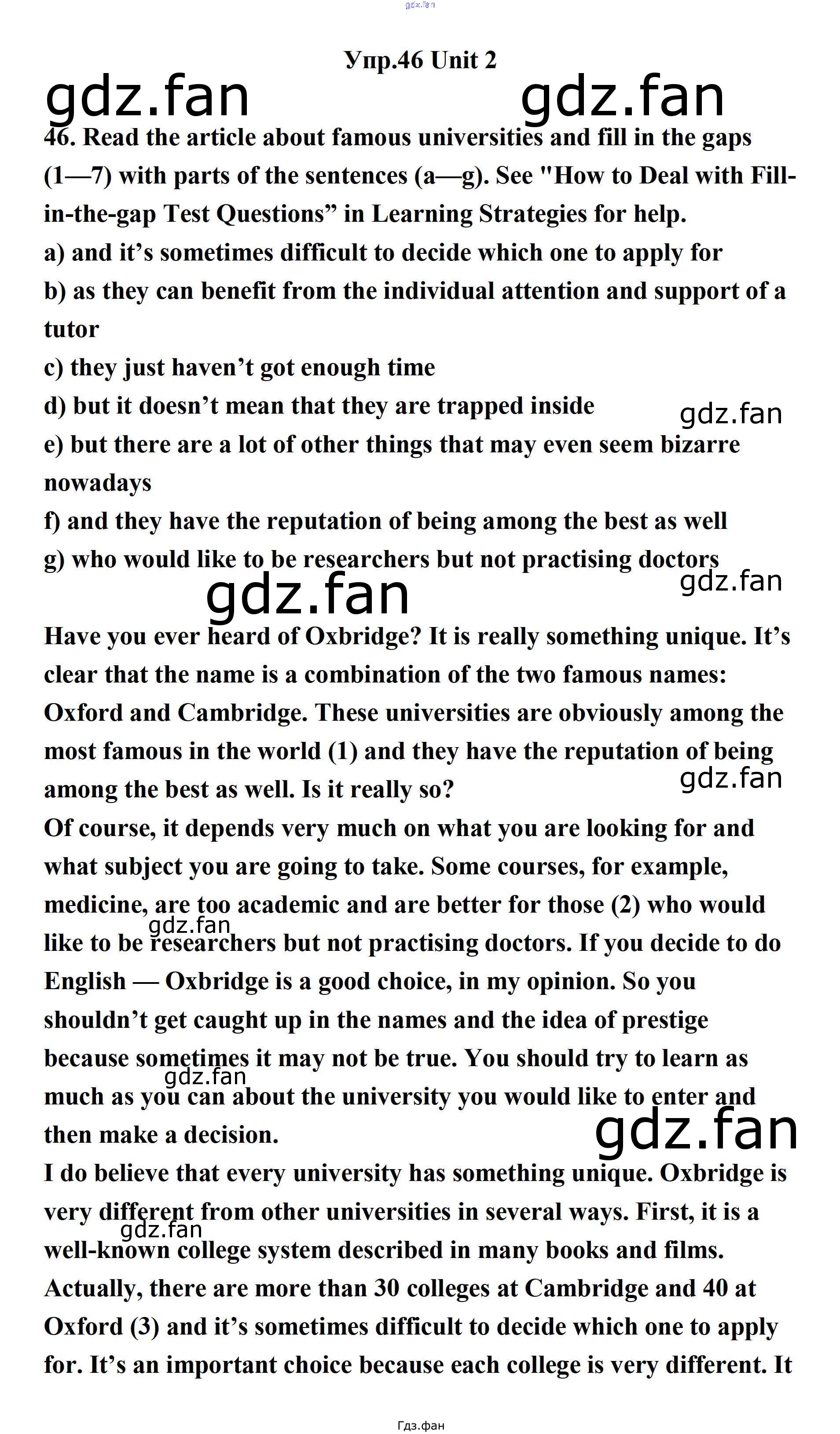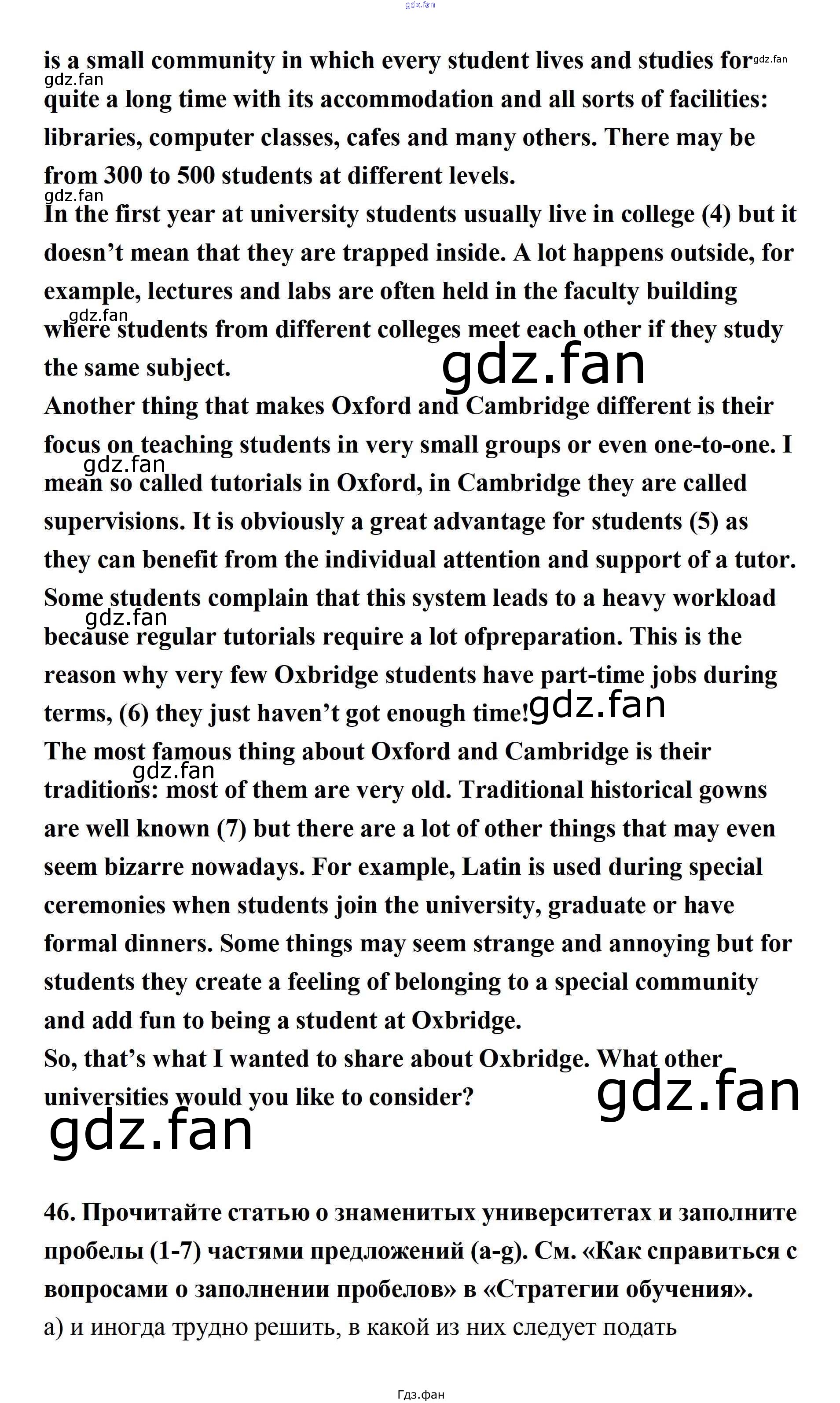 Проверка домашнего задания всегда занимает большое количество времени. На помощь приходит ГДЗ фан по Английскому языку одиннадцатого класса. Здесь собраны популярные ответы на 46 (стр. 62) Английский язык 11 класс Биболетова