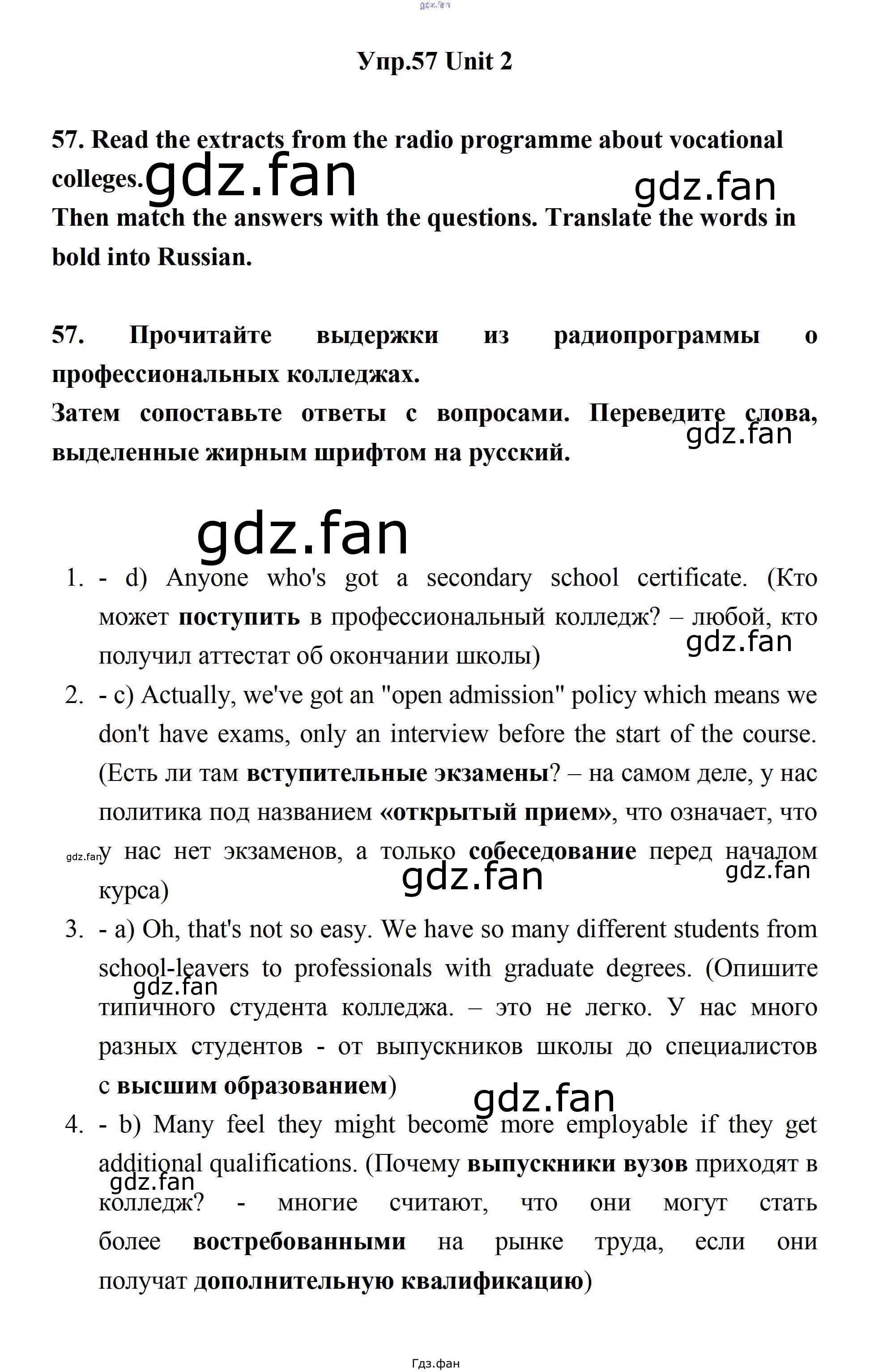 Проверка домашнего задания всегда занимает большое количество времени. На помощь приходит ГДЗ фан по Английскому языку одиннадцатого класса. Здесь собраны популярные ответы на 57 (стр. 65) Английский язык 11 класс Биболетова