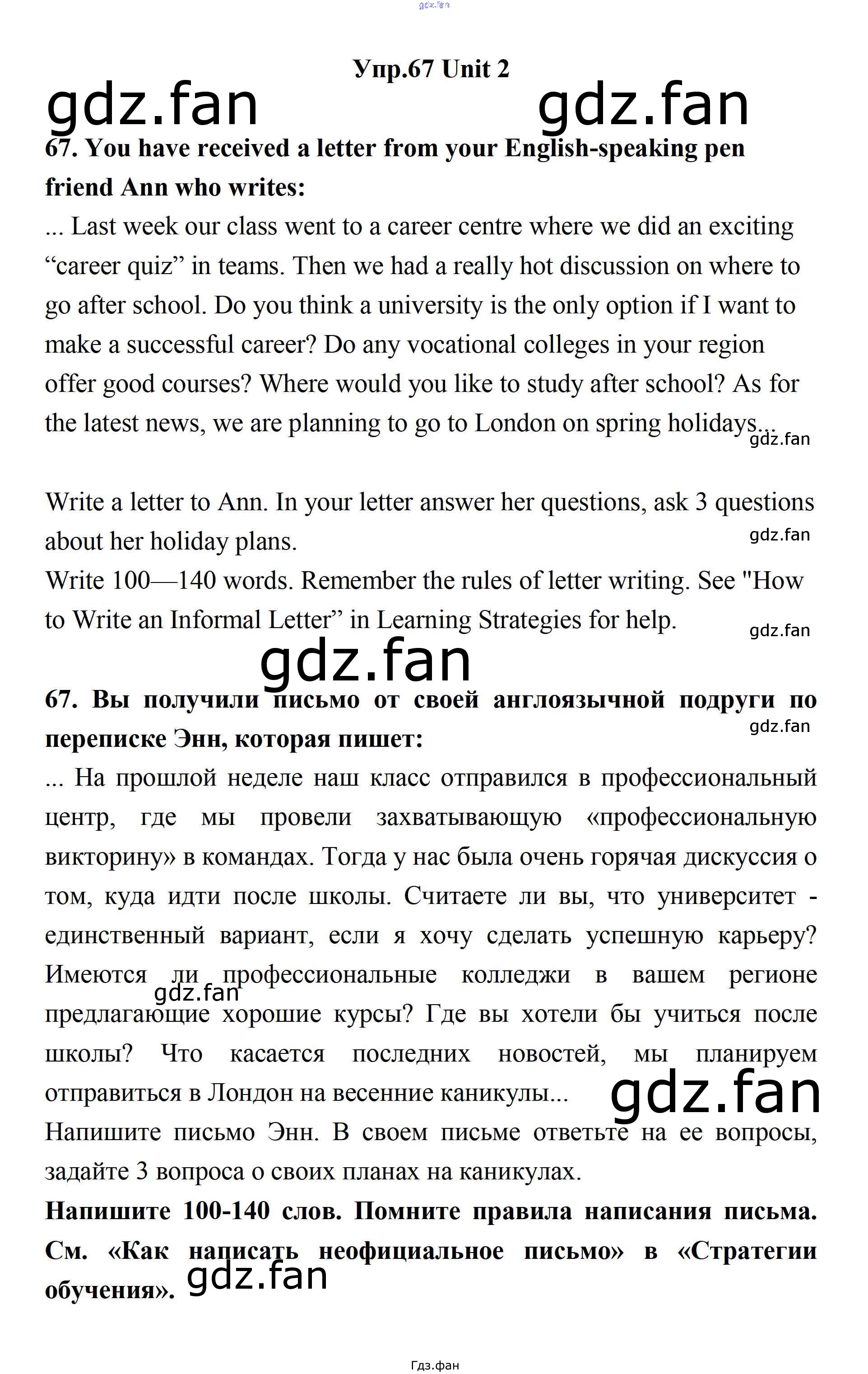Проверка домашнего задания всегда занимает большое количество времени. На помощь приходит ГДЗ фан по Английскому языку одиннадцатого класса. Здесь собраны популярные ответы на 67 (стр. 67) Английский язык 11 класс Биболетова