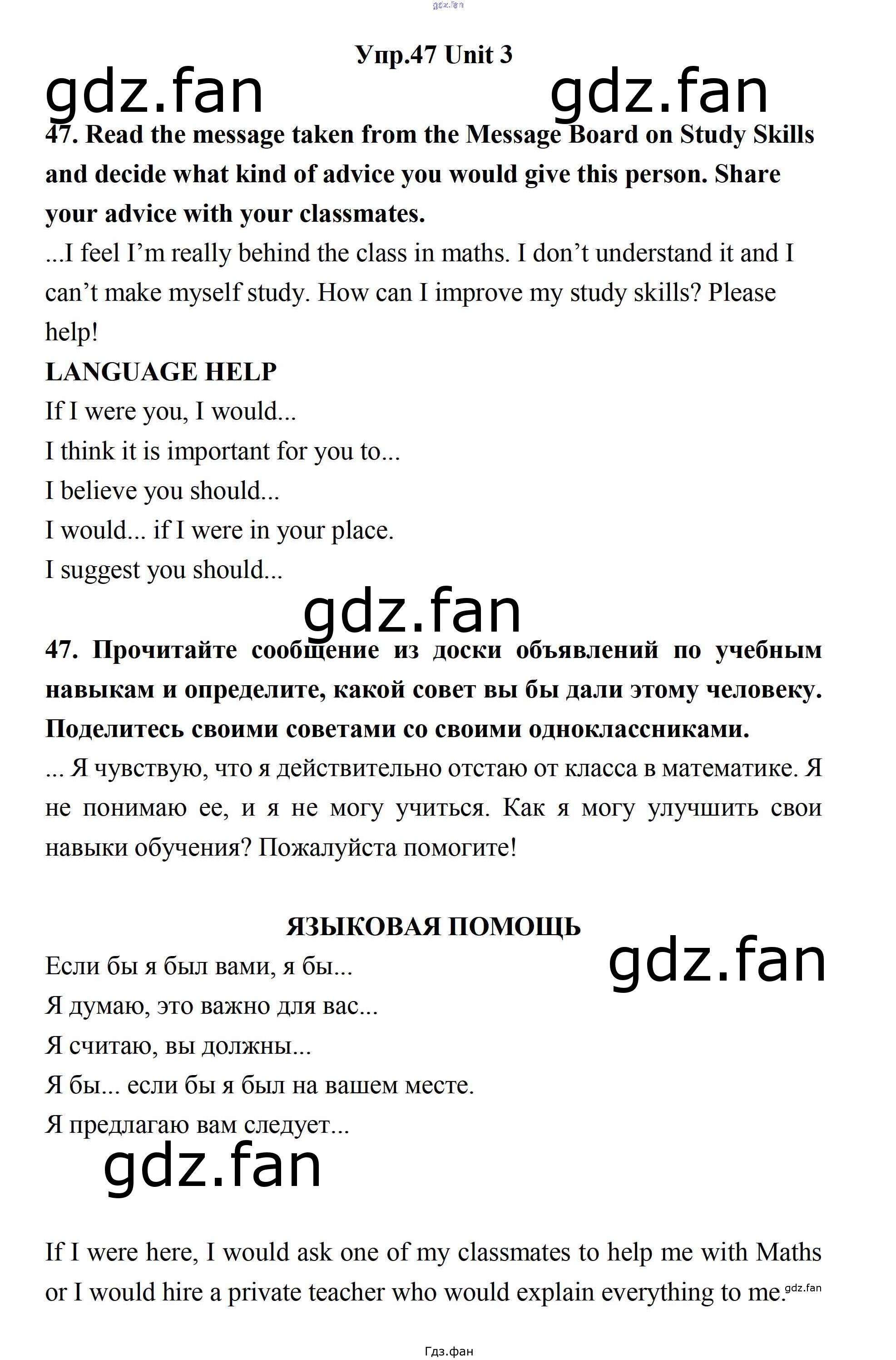 Проверка домашнего задания всегда занимает большое количество времени. На помощь приходит ГДЗ фан по Английскому языку одиннадцатого класса. Здесь собраны популярные ответы на 47 (стр. 97) Английский язык 11 класс Биболетова