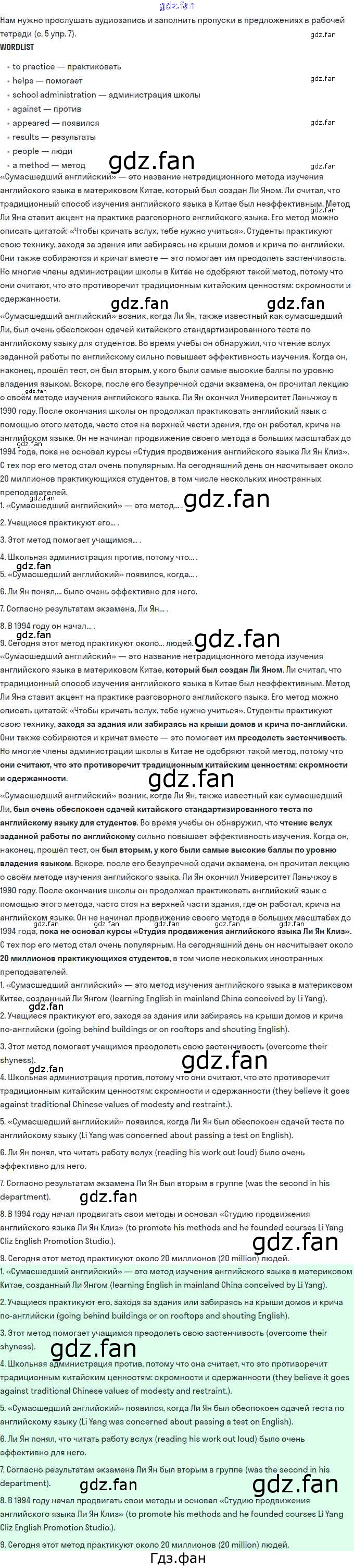 Проверка домашнего задания всегда занимает большое количество времени. На помощь приходит ГДЗ фан по Английскому языку одиннадцатого класса. Здесь собраны популярные ответы на 7 (стр. 5) Английский язык 11 класс рабочая тетрадь Биболетова М.З.