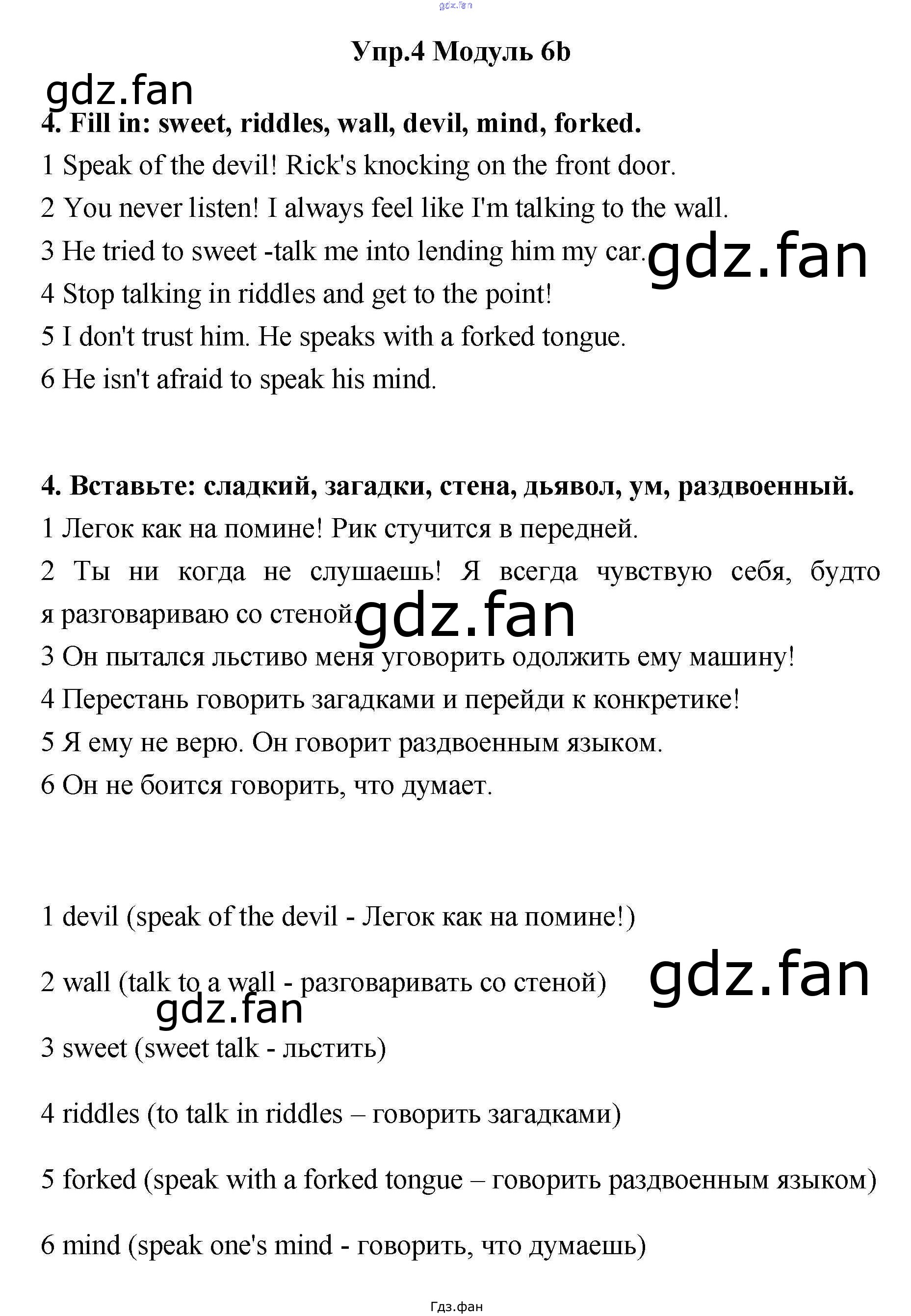 Проверка домашнего задания всегда занимает большое количество времени. На помощь приходит ГДЗ фан по Английскому языку одиннадцатого класса. Здесь собраны популярные ответы на 4 (стр. 45) Английский язык 11 класс рабочая тетрадь Эванс Spotlight