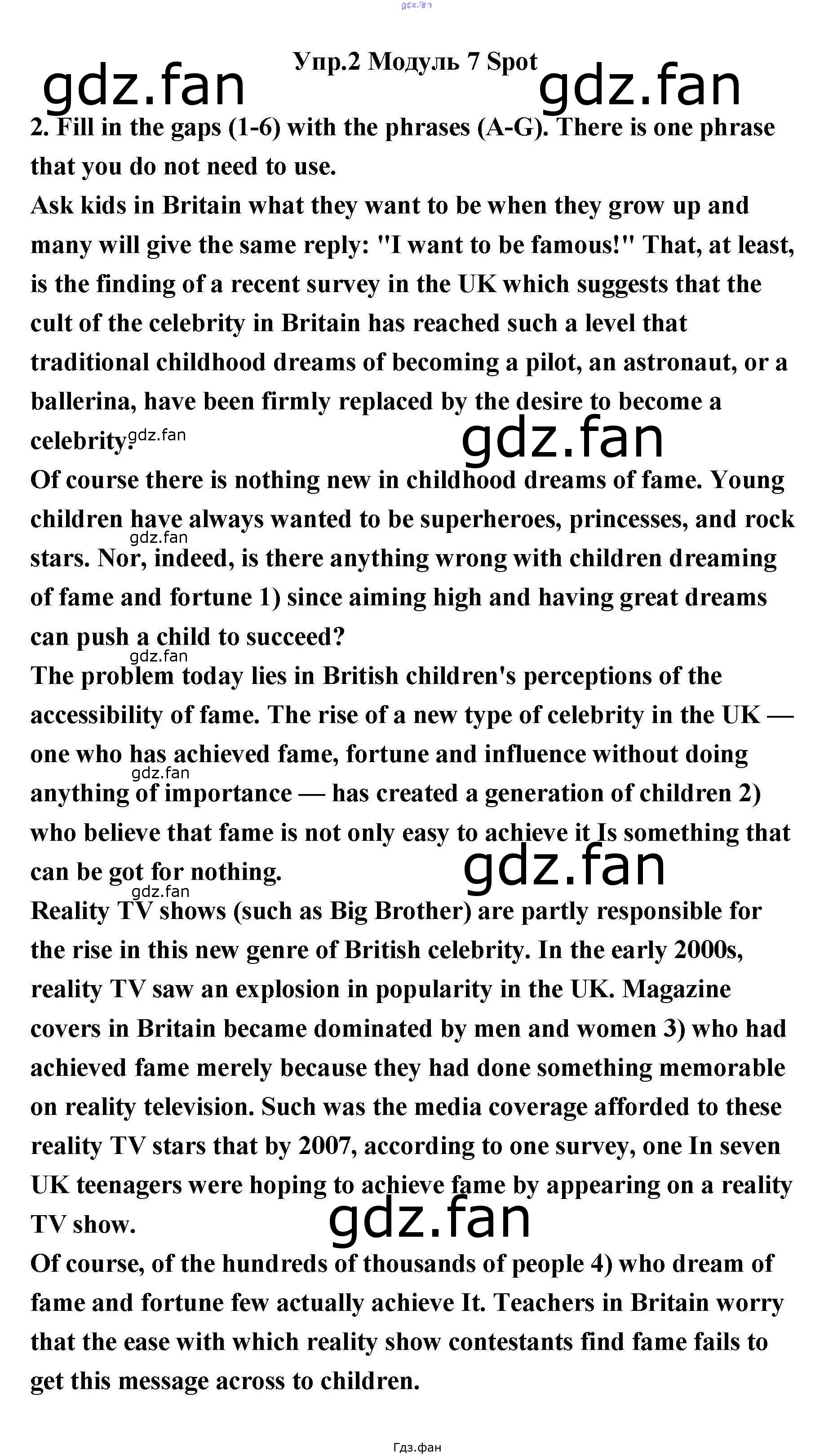 Проверка домашнего задания всегда занимает большое количество времени. На помощь приходит ГДЗ фан по Английскому языку одиннадцатого класса. Здесь собраны популярные ответы на 2 (стр. 59) Английский язык 11 класс рабочая тетрадь Эванс Spotlight