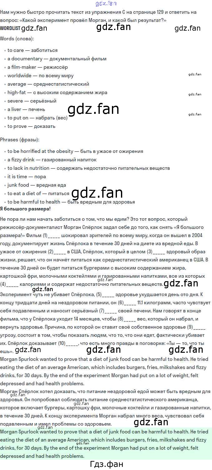 Проверка домашнего задания всегда занимает большое количество времени. На помощь приходит ГДЗ фан по Английскому языку одиннадцатого класса. Здесь собраны популярные ответы на 129 (unit 10) Английский язык 11 класс Комарова Ю.А.