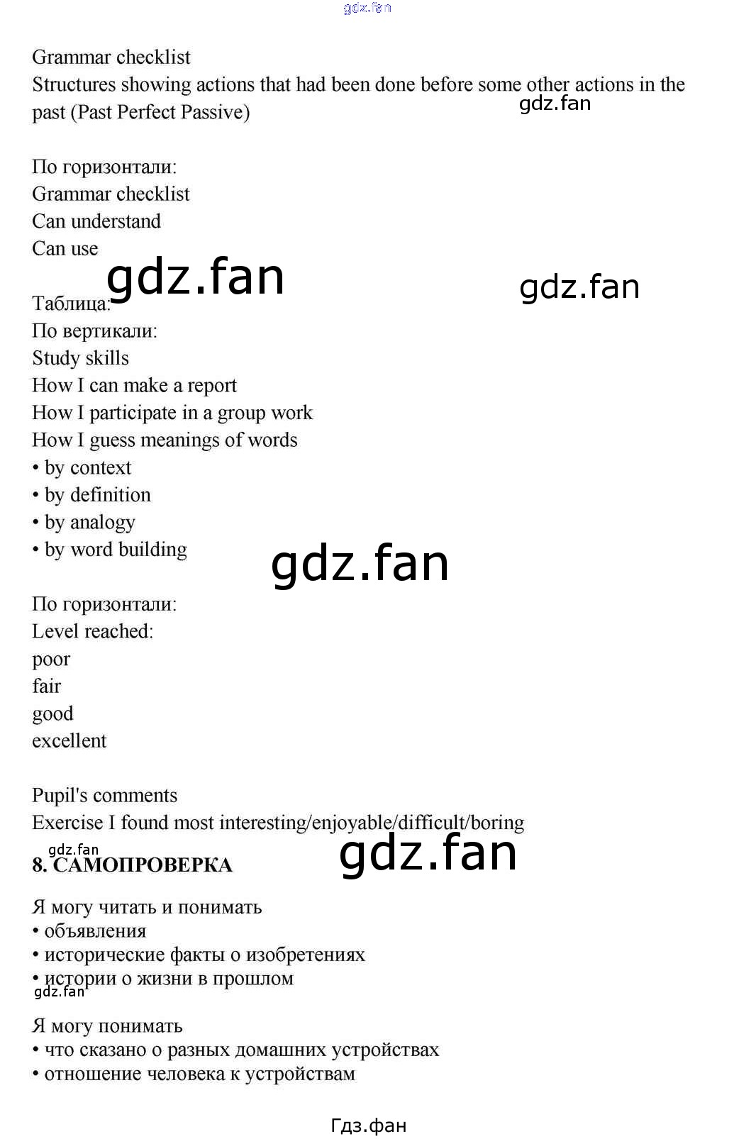 Проверка домашнего задания всегда занимает большое количество времени. На помощь приходит ГДЗ фан по Английскому языку десятого класса. Здесь собраны популярные ответы на 8 (стр. 258) Английский язык 10-11 класс Кузовлёв В.П.