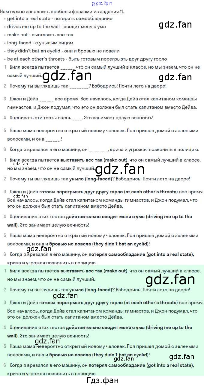 Проверка домашнего задания всегда занимает большое количество времени. На помощь приходит ГДЗ фан по Английскому языку одиннадцатого класса. Здесь собраны популярные ответы на 12 (стр. 6) Английский язык 11 класс рабочая тетрадь Вербицкая М.В.