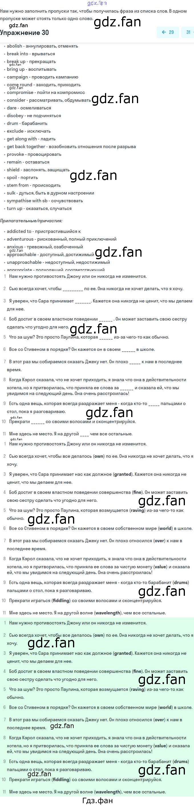 Проверка домашнего задания всегда занимает большое количество времени. На помощь приходит ГДЗ фан по Английскому языку одиннадцатого класса. Здесь собраны популярные ответы на 30 (стр. 11) Английский язык 11 класс рабочая тетрадь Вербицкая М.В.