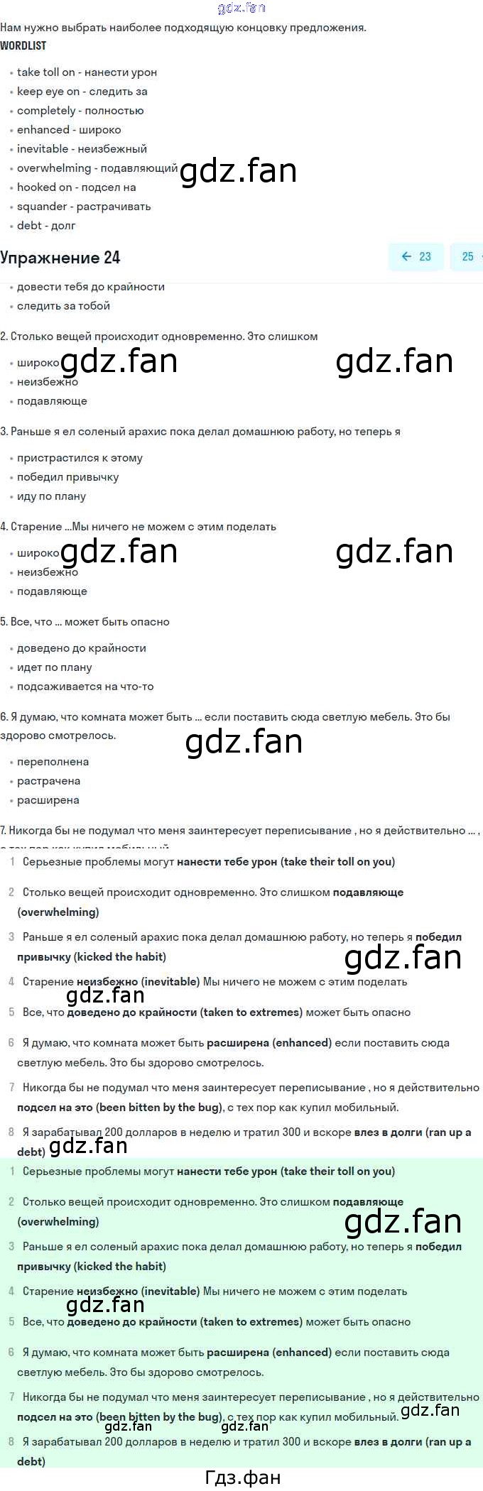 Проверка домашнего задания всегда занимает большое количество времени. На помощь приходит ГДЗ фан по Английскому языку одиннадцатого класса. Здесь собраны популярные ответы на 24 (стр. 26) Английский язык 11 класс рабочая тетрадь Вербицкая М.В.