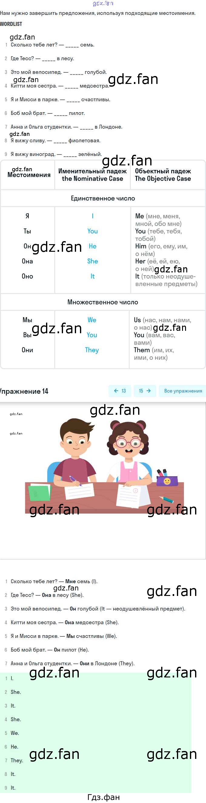 Проверка домашнего задания всегда занимает большое количество времени. На помощь приходит ГДЗ фан по Английскому языку второго класса. Здесь собраны популярные ответы на 14 (стр. 88) Английский язык 2 класс лексико-грамматический практикум Афанасьева О.В.