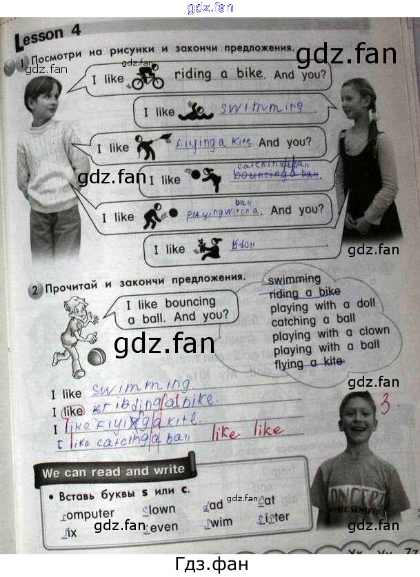 Проверка домашнего задания всегда занимает большое количество времени. На помощь приходит ГДЗ фан по Английскому языку второго класса. Здесь собраны популярные ответы на 43 (Lesson 4 № 1, 2) Английский язык 2 класс рабочая тетрадь Азарова
