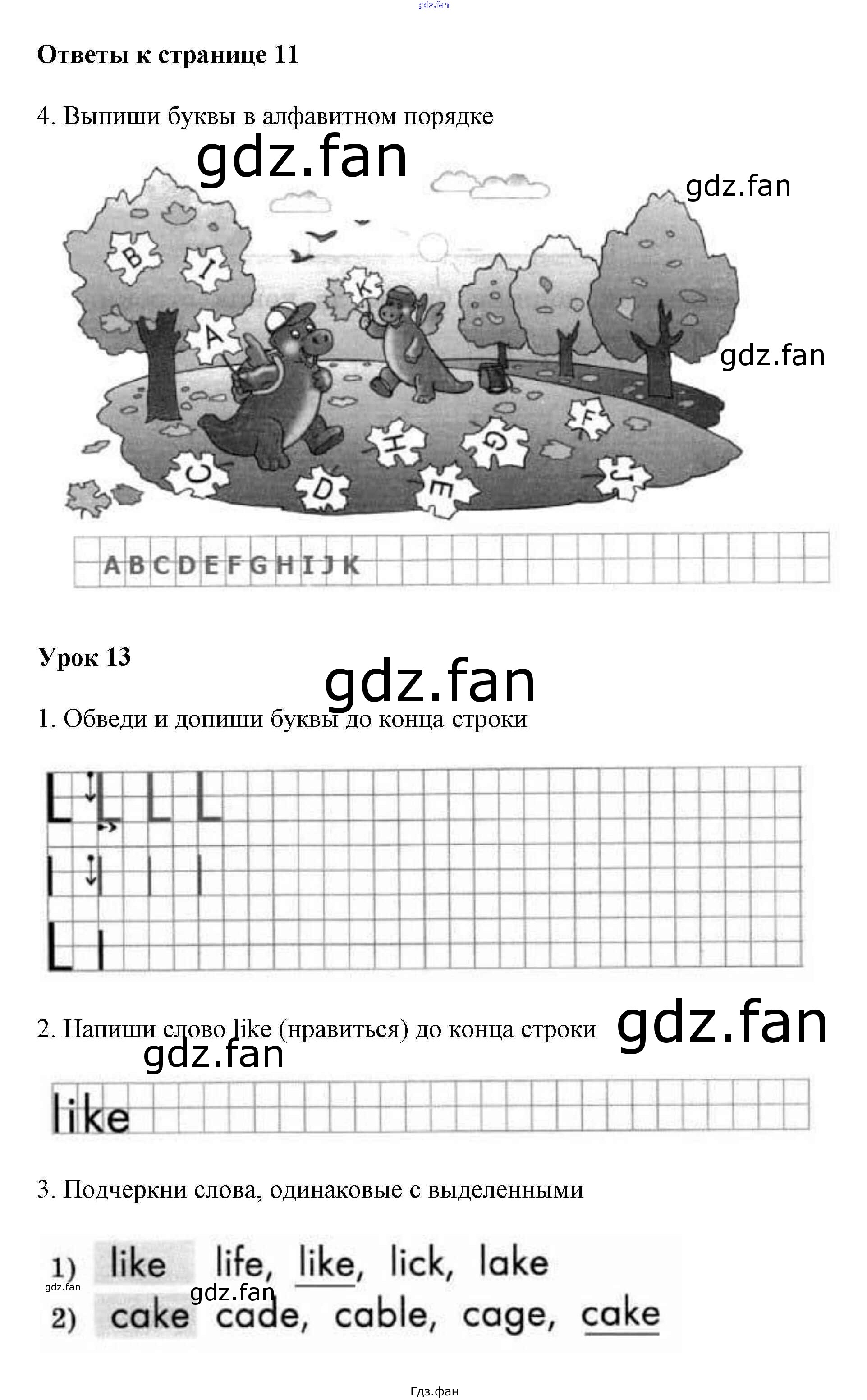 Проверка домашнего задания всегда занимает большое количество времени. На помощь приходит ГДЗ фан по Английскому языку второго класса. Здесь собраны популярные ответы на 11 (№ 4. Урок 13 № 1, 2, 3) Английский язык 2 класс рабочая тетрадь Биболетова Enjoy English