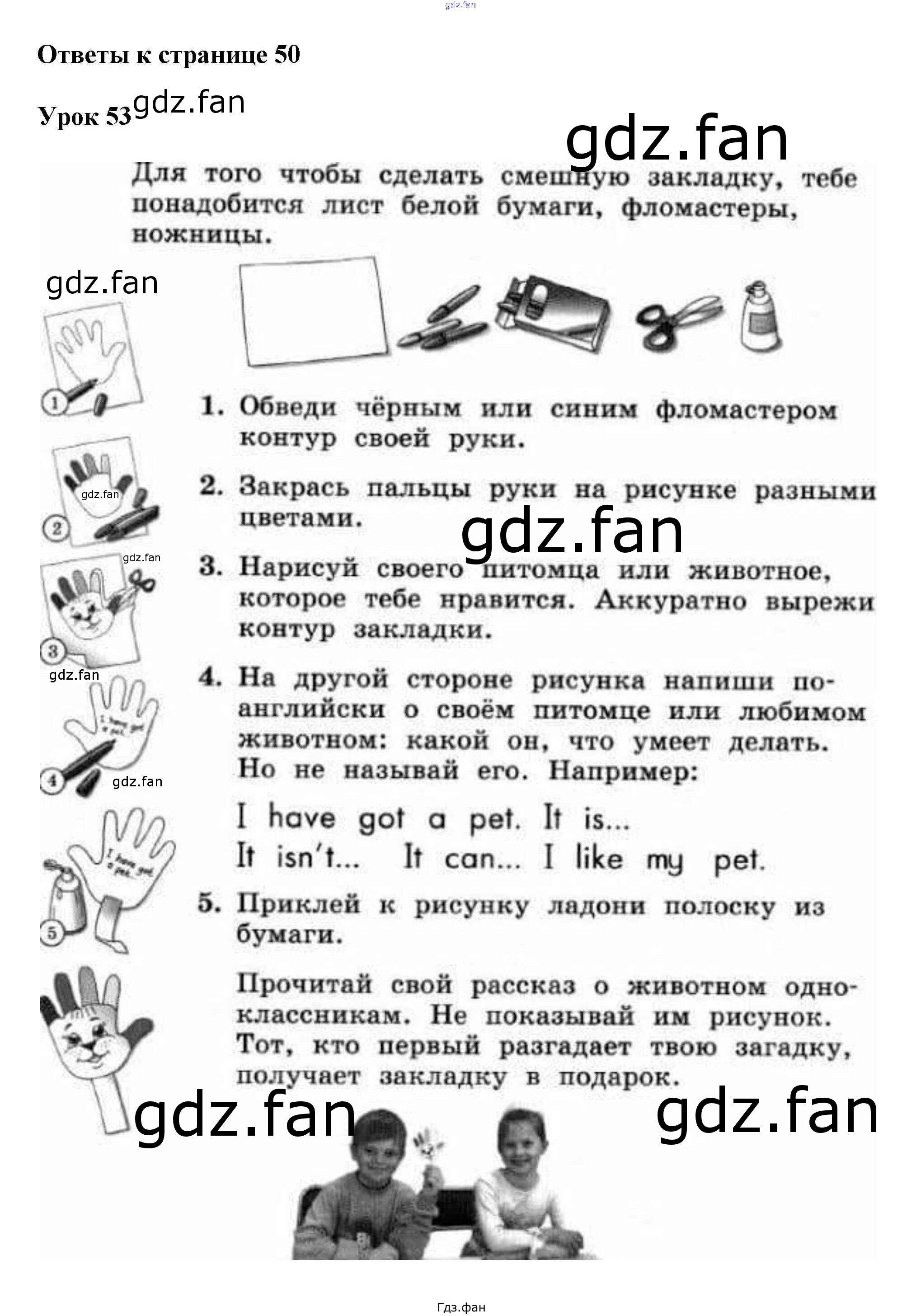 Проверка домашнего задания всегда занимает большое количество времени. На помощь приходит ГДЗ фан по Английскому языку второго класса. Здесь собраны популярные ответы на 50 (Урок 53) Английский язык 2 класс рабочая тетрадь Биболетова Enjoy English