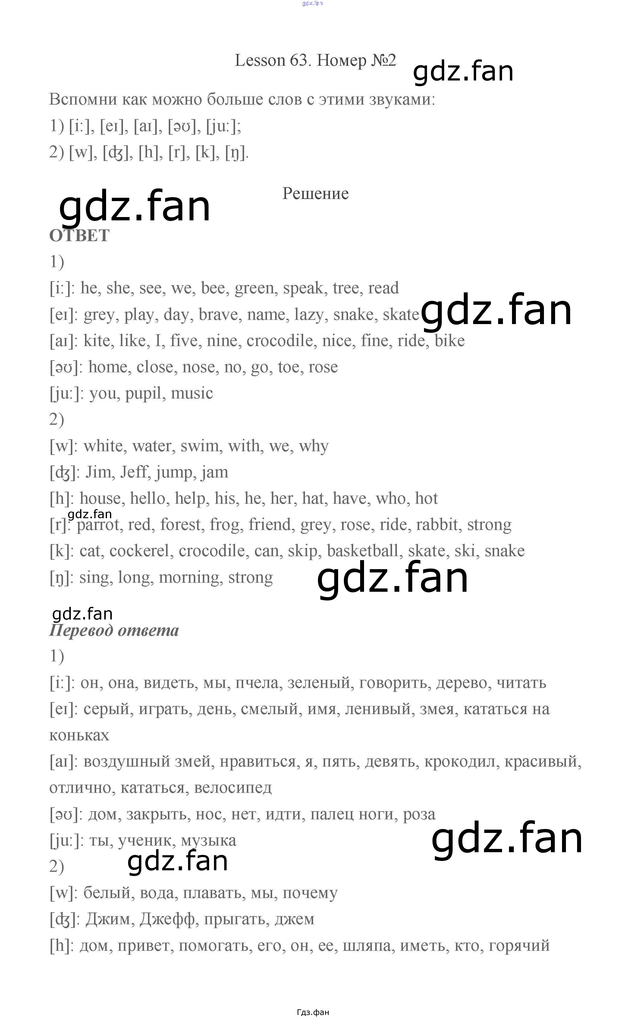 Проверка домашнего задания всегда занимает большое количество времени. На помощь приходит ГДЗ фан по Английскому языку второго класса. Здесь собраны популярные ответы на 124 (Lesson 63 № 1, 2, 3) Английский язык 2 класс Биболетова Enjoy English