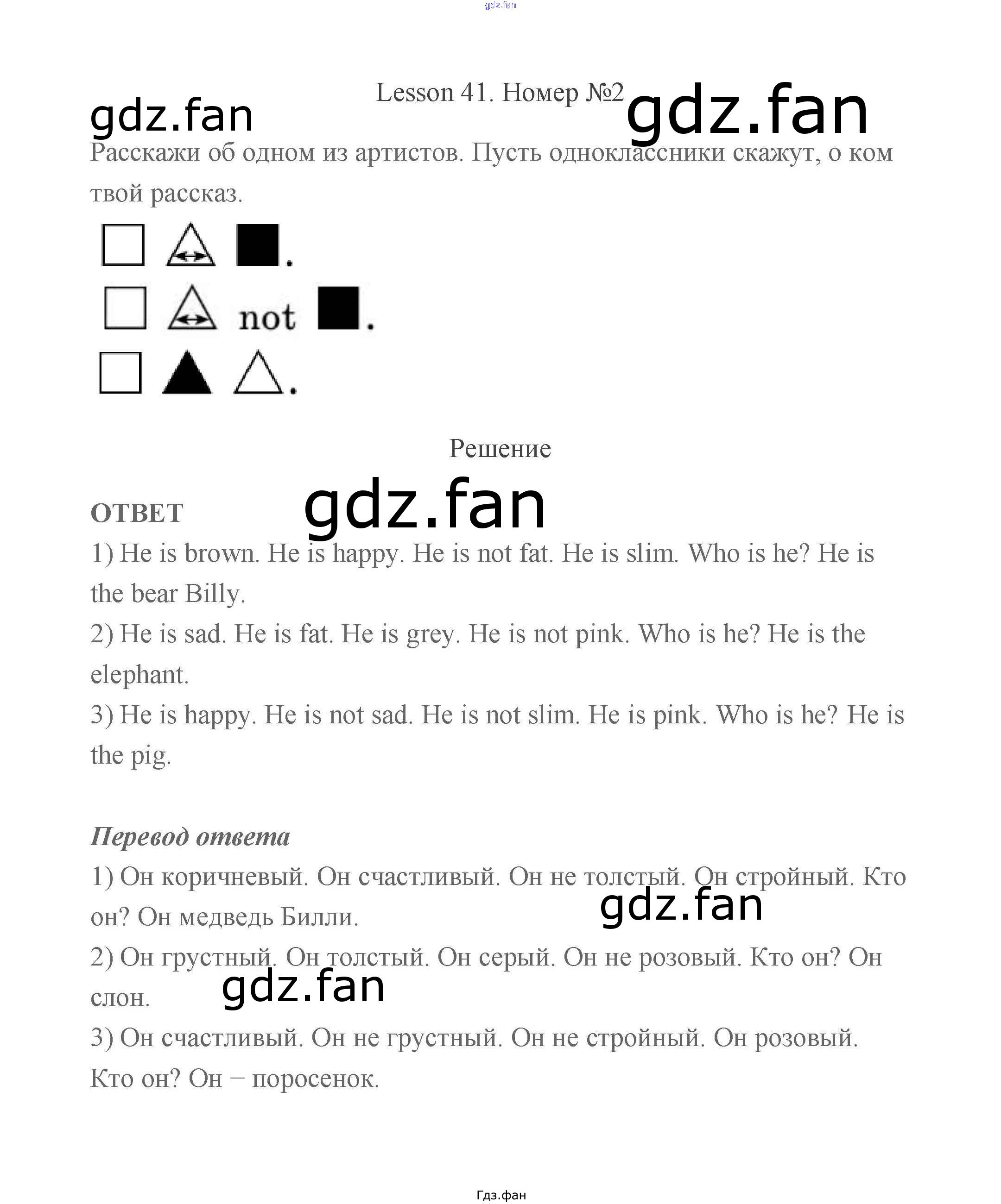 Проверка домашнего задания всегда занимает большое количество времени. На помощь приходит ГДЗ фан по Английскому языку второго класса. Здесь собраны популярные ответы на 80 (Lesson 41 № 1, 2, 3) Английский язык 2 класс Биболетова Enjoy English