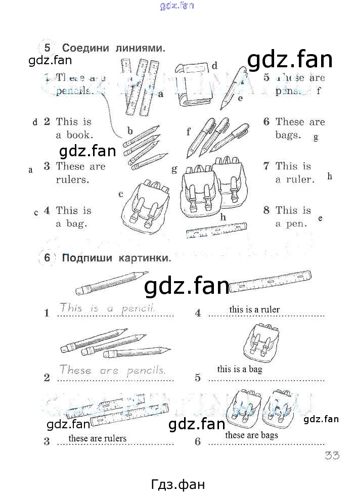 Проверка домашнего задания всегда занимает большое количество времени. На помощь приходит ГДЗ фан по Английскому языку второго класса. Здесь собраны популярные ответы на 33 (раздел 5) Английский язык 2 класс рабочая тетрадь Комарова