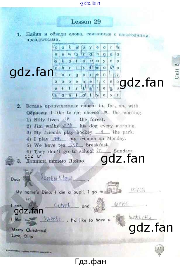 ГДЗ - онлайн ответы на 33 (Lesson 29 № 1, 2, 3) Английский язык для 3 класса к Рабочей тетради Enjoy English Биболетова, Денисенко 2015
