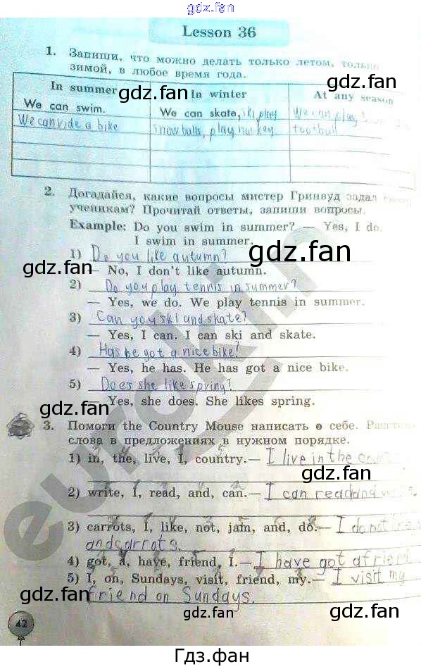 ГДЗ - онлайн ответы на 42 (Lesson 36 № 1, 2, 3) Английский язык для 3 класса к Рабочей тетради Enjoy English Биболетова, Денисенко 2015