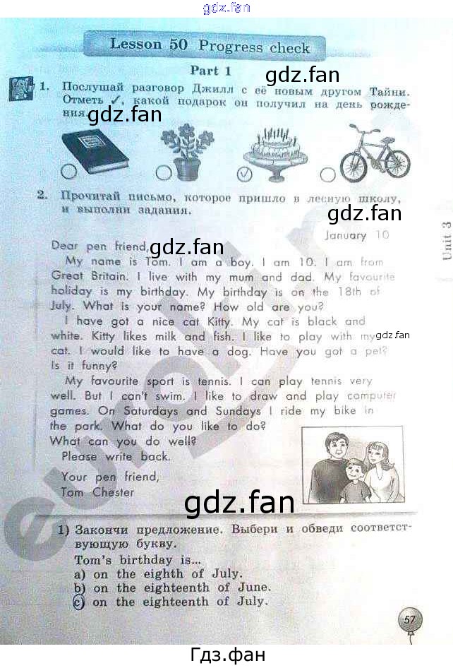Проверка домашнего задания всегда занимает большое количество времени. На помощь приходит ГДЗ фан по Английскому языку третьего класса. Здесь собраны популярные ответы на 57 (Lesson 50 № 1, 2) Английский язык 3 класс рабочая тетрадь Биболетова