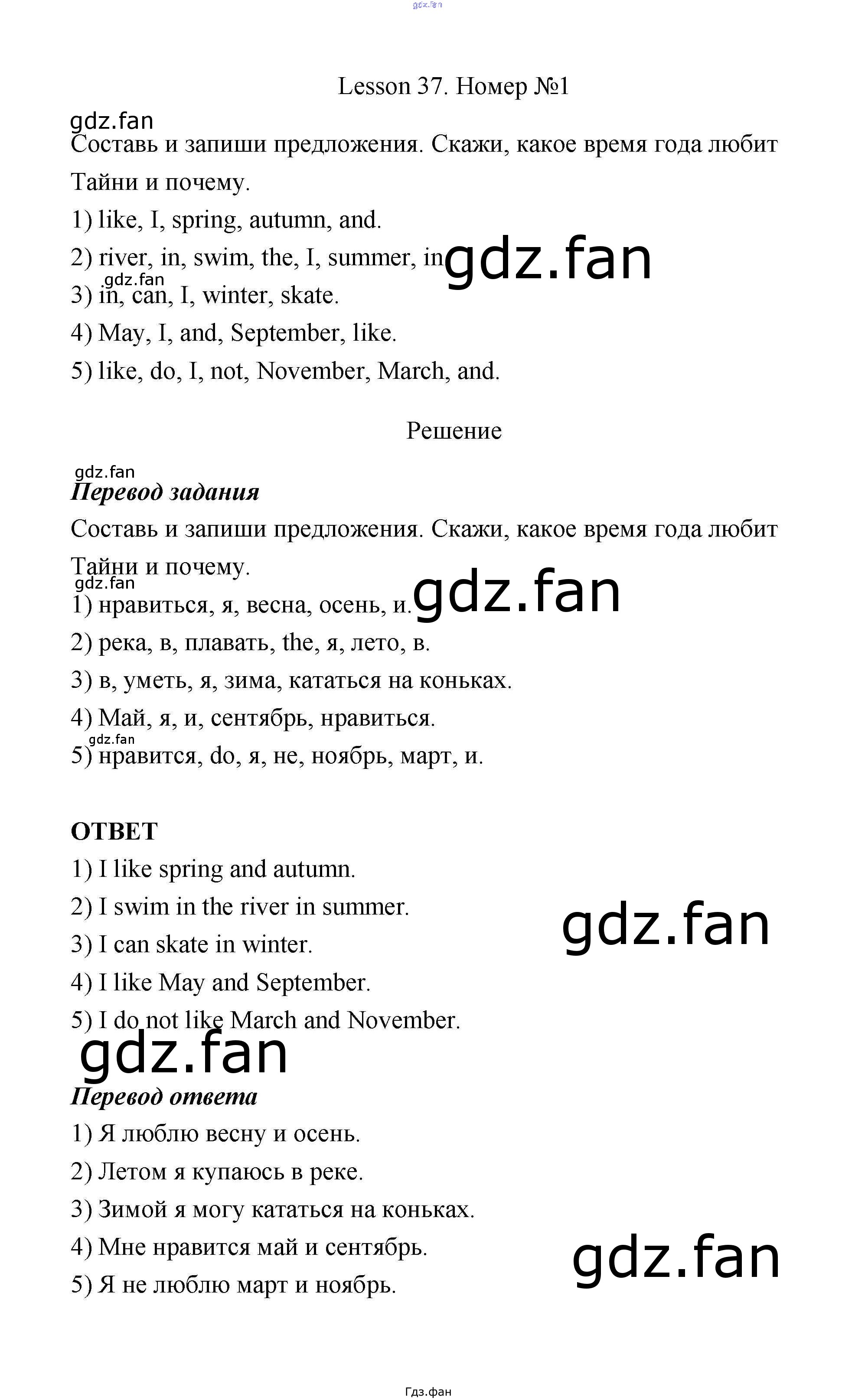 ГДЗ - онлайн ответы на 43 (Lesson 37 № 1, 2, 3) Английский язык для 3 класса к Рабочей тетради с контрольными работами Enjoy English Биболетова, Денисенко 2016
