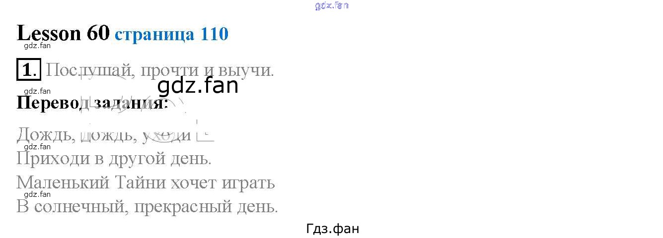 Проверка домашнего задания всегда занимает большое количество времени. На помощь приходит ГДЗ фан по Английскому языку третьего класса. Здесь собраны популярные ответы на 110 (№ 6. Lesson 60 № 1, 2) Английский язык 3 класс Биболетова